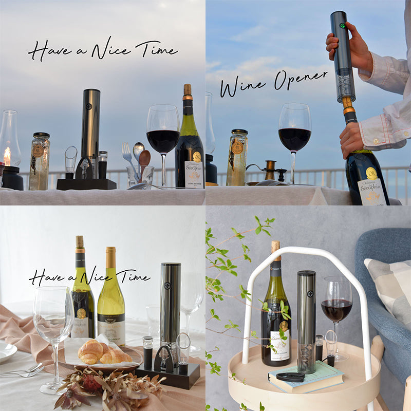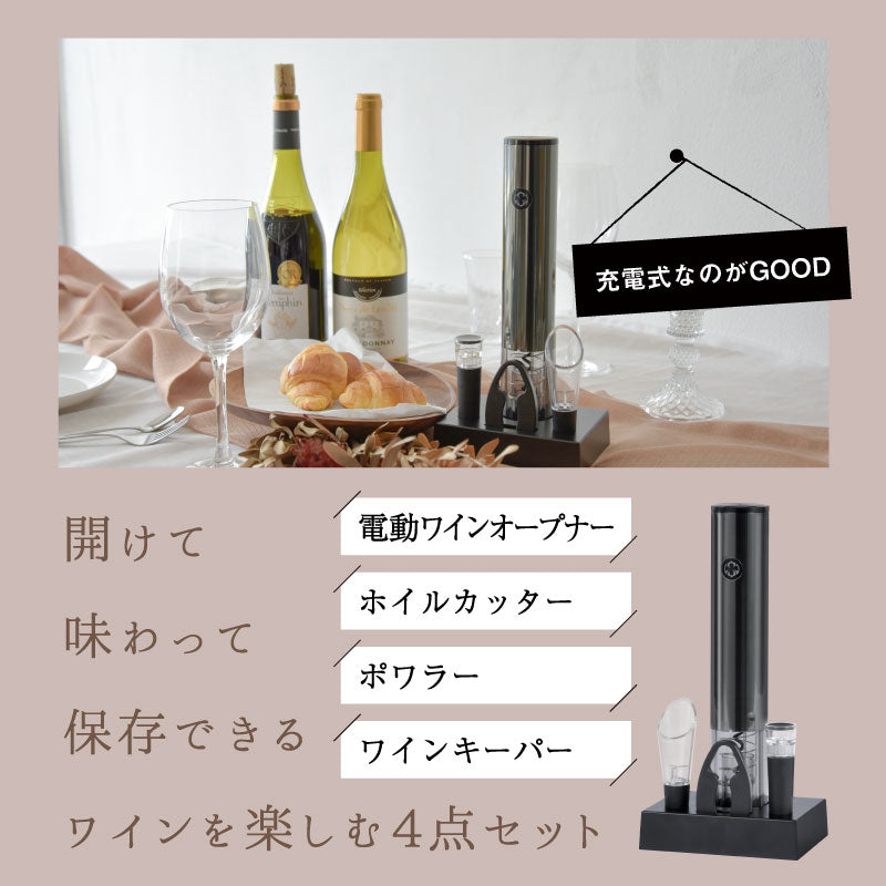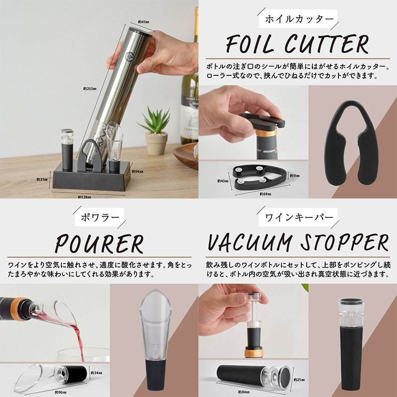 充電式電動ワインオープナー フィルカッター・ポワラー・キーパー・台座4点セット