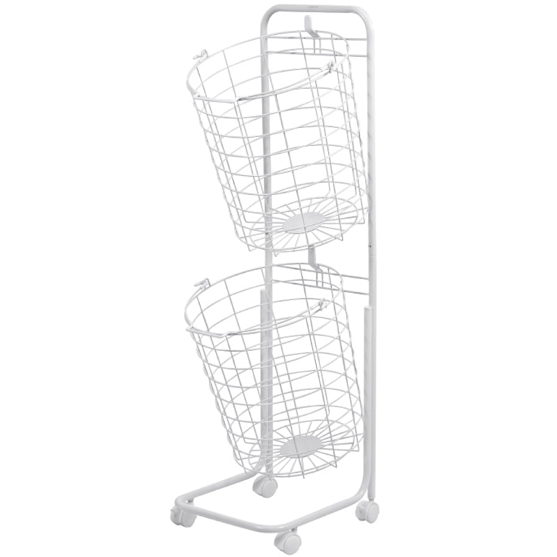 タテ丸型2段ランドリーバスケット 25L+25L大容量 キャスター/ハンドル付き
