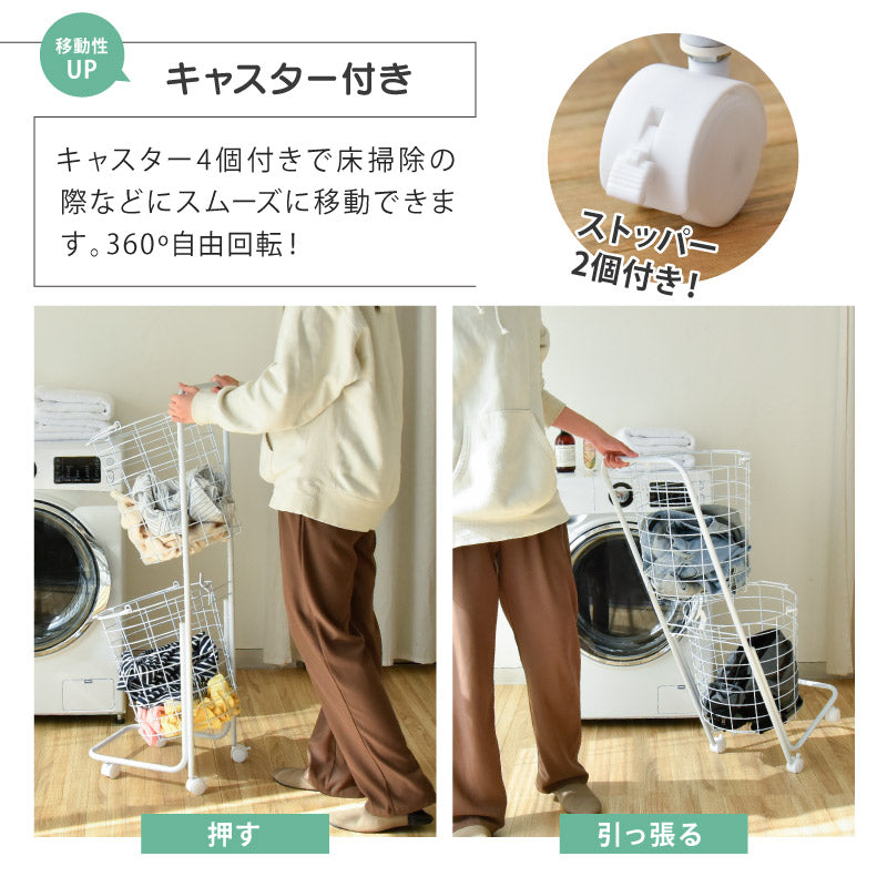 ・洗濯物の事前分別で仕分ける手間いらず ・バスケットを取り外し&重ねて運ぶことができ、ランドリーワゴンごと移動も可能 ・シンプルな北欧デザインは部屋の見せ収納にも◎ |