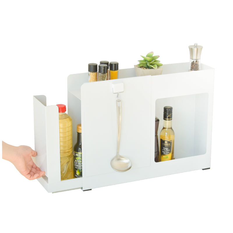 隠れる調味料ストッカー 見せ収納 左開き 油はね防止カバー付き 横から取り出せる