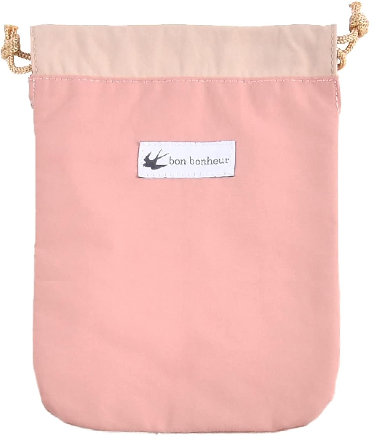 裏地付き巾着ポーチ 小 軽くて丈夫 丸洗い 小物収納 おしゃれ ピンクベージュ