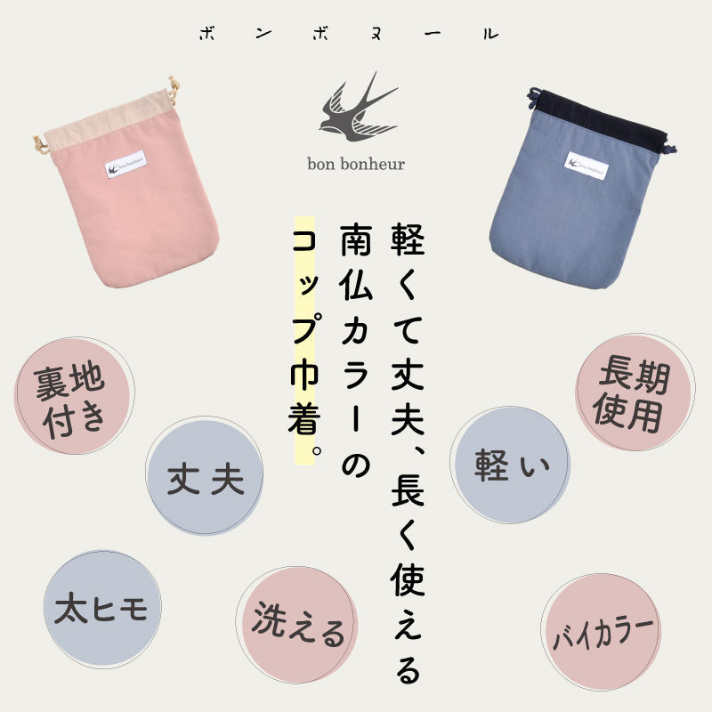 ・子どもから大人まで使える ・軽くて丈夫なものが欲しい ・高見えする新しい感覚の巾着が欲しい ・裏地がついている ・旅行時小分け袋が欲しい こんなご要望に満足できる巾着ポーチ。 |