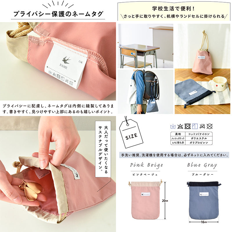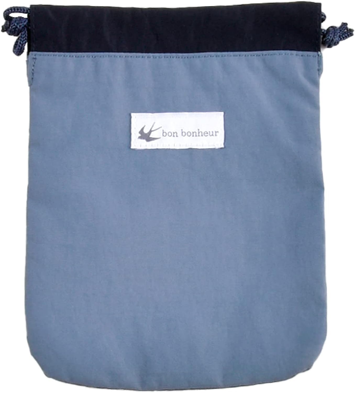 裏地付き巾着ポーチ 小 軽くて丈夫 丸洗い 小物収納 おしゃれ ブルーグレー