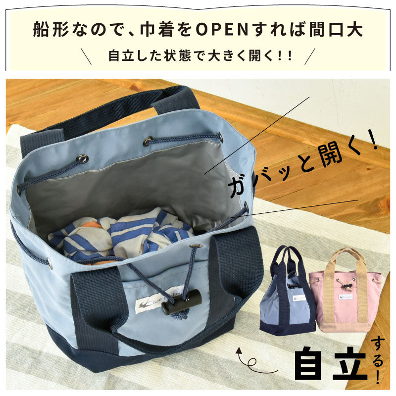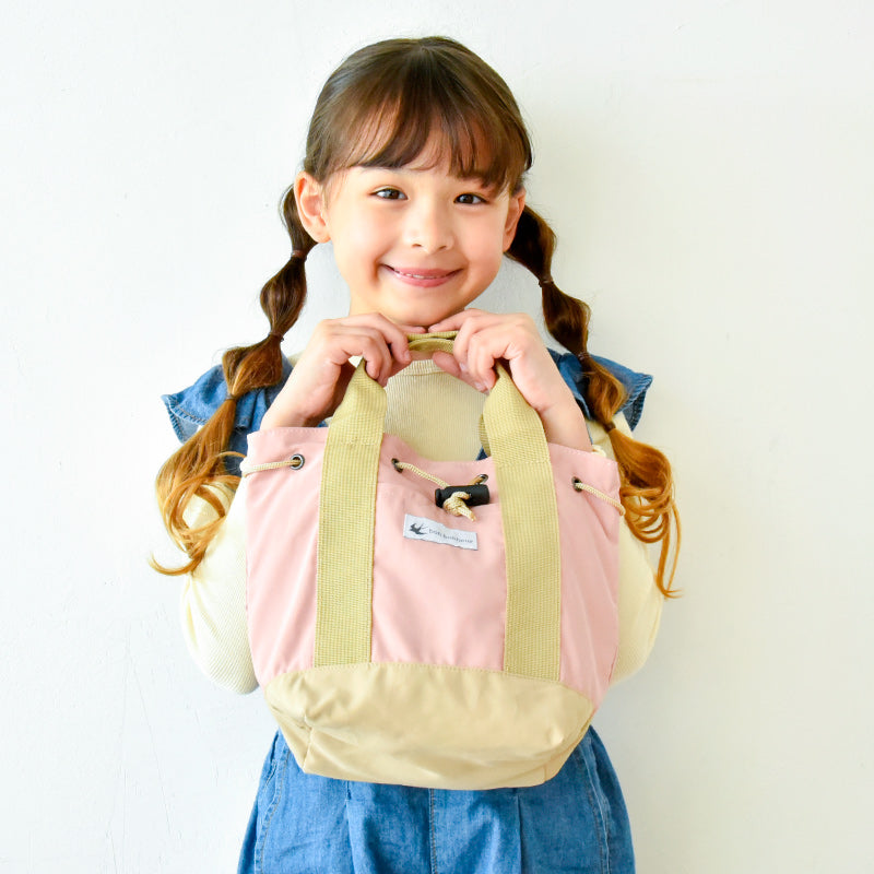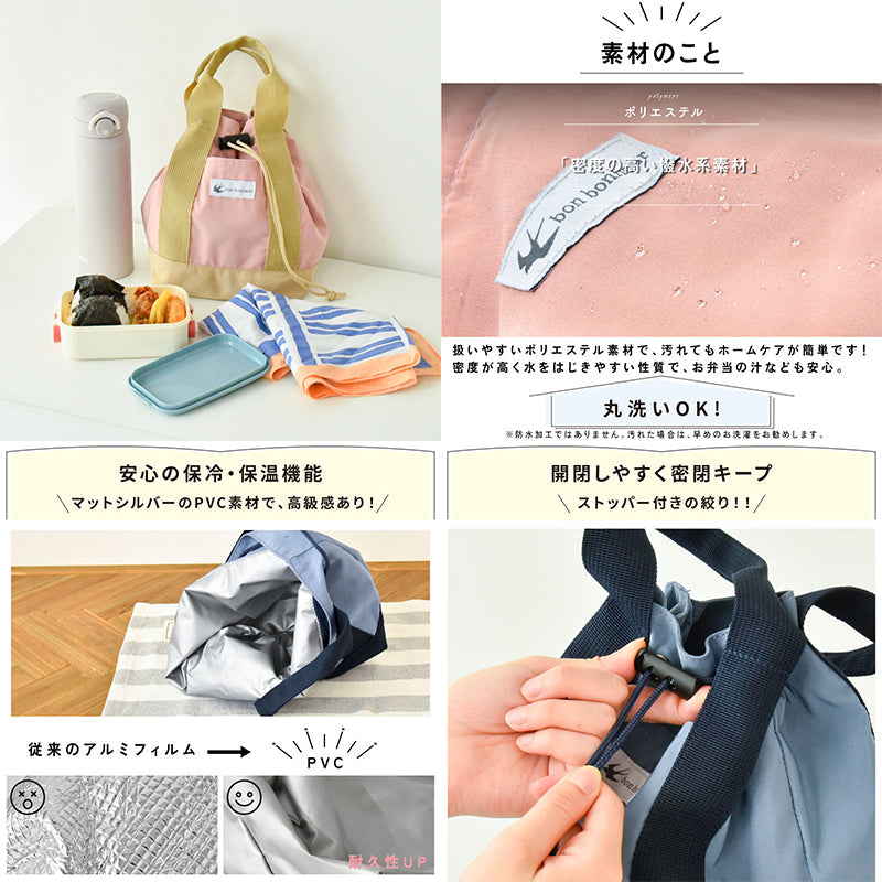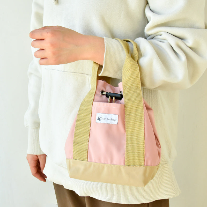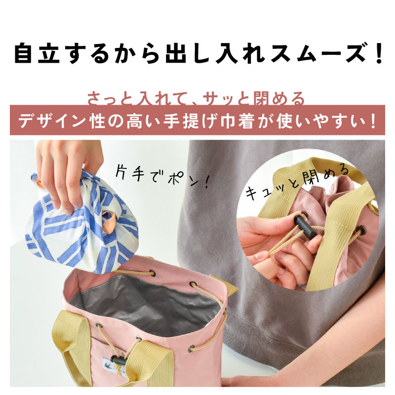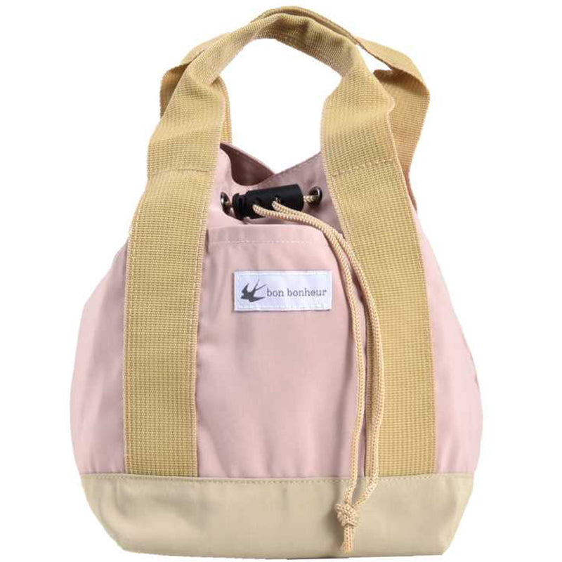 保冷・保温ランチバッグ トート巾着 ストッパー付き 丸洗い 撥水 ピンクベージュ