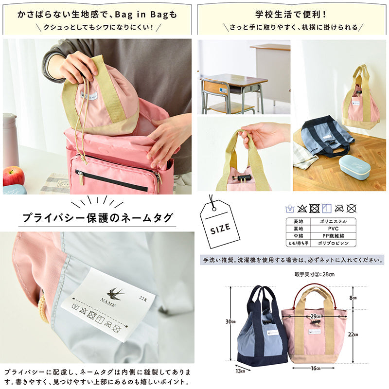 ・子どもから大人まで使える ・バッグinバッグ/手提げ両方使える ・保冷保温機能付き ・大きめお弁当も入る ・ちょっとした買い物に あなたのこんなご要望に満足できるランチバッグ |
