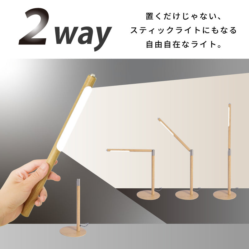 LEDデスク/スティック2wayライト コードレス 3段調色無段階調光 ブラック