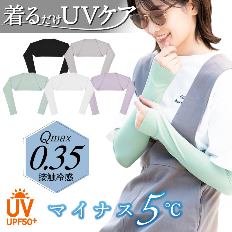 ロングアームカバー UPF50+ 冷感 遮光 遮熱 指あり 羽織る ミント