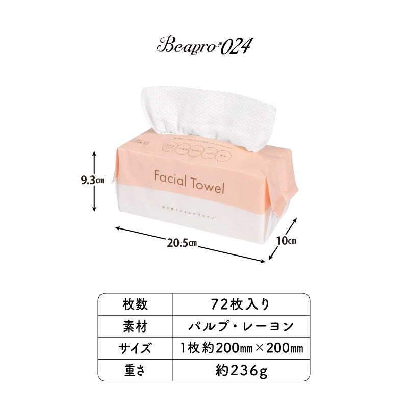 ●ビープロのフェイシャルタオルは、シルクのような肌触りのシートで摩擦を軽減。 凹凸表面加工なので汚れはしっかり吸着。 肌に繊維が残りにくく優しい使い心地。 大判厚手タイプなので、1枚で顔全体の水分をサッと吸収。 ◆通常のタオル代わりとして ◆全身清拭 ◆手拭き ◆日常の食べこぼしや掃除 ◆洗顔スポンジ、ネットの代わりとして ◆ウエットティッシュ代わりとして ◆パックシート代わりに ◆パッティングパフとして ◆メイク落としにたっぷりクレンジングオイルを染み込ませて ◆使い終わったら、洗面周りの清掃に!無駄なく使えます