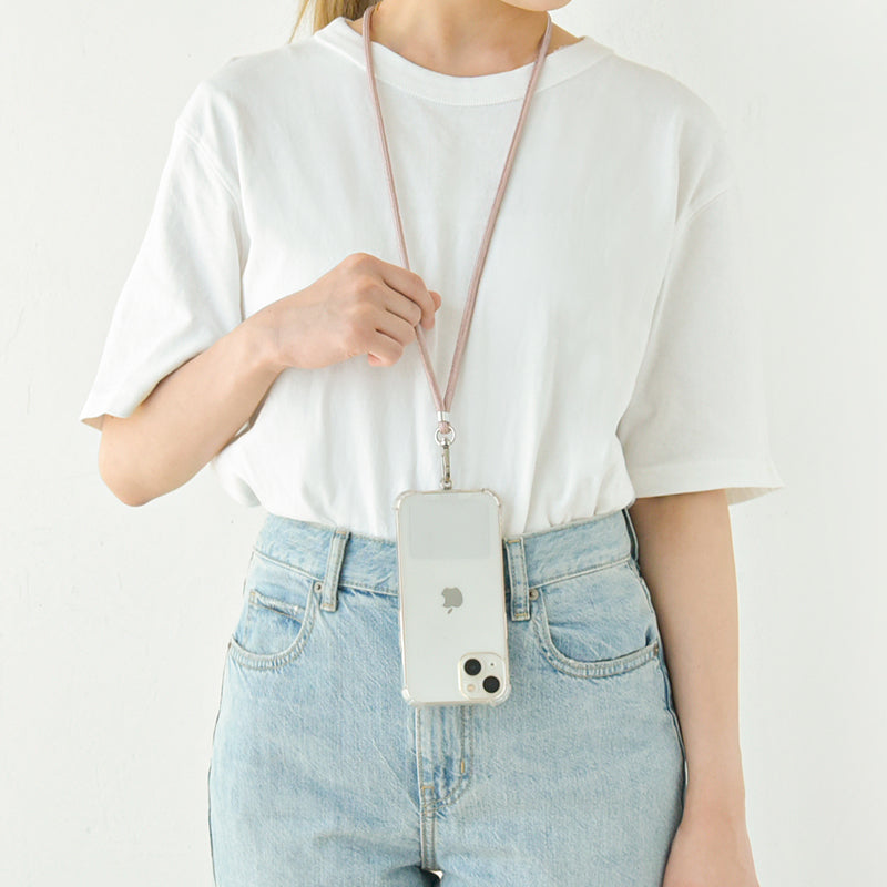 ●自分のスマホが、おしゃれなロングストラップ付きに変身! 市販の簡易ケースを応用して スマートにスマホを身につける! 薄いホルダーを端末とケースの間に挟むだけ。 簡単便利なストラップアタッチメント♪ トレンドの「肩掛け」「首掛け」「斜めがけ」はこれ1本で完了。
