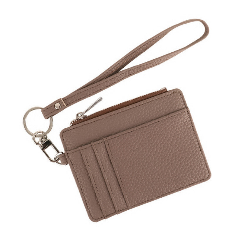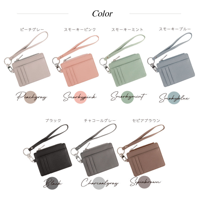 カード/パスケース ストラップ付き 盗難防止 ファスナー小銭入れ付き おしゃれ セピアブラウン