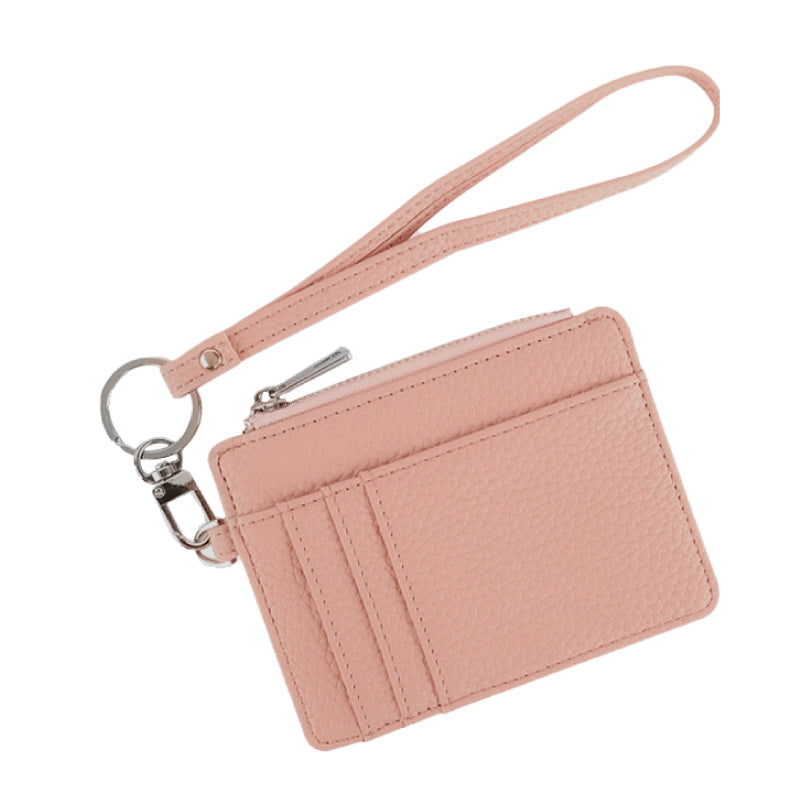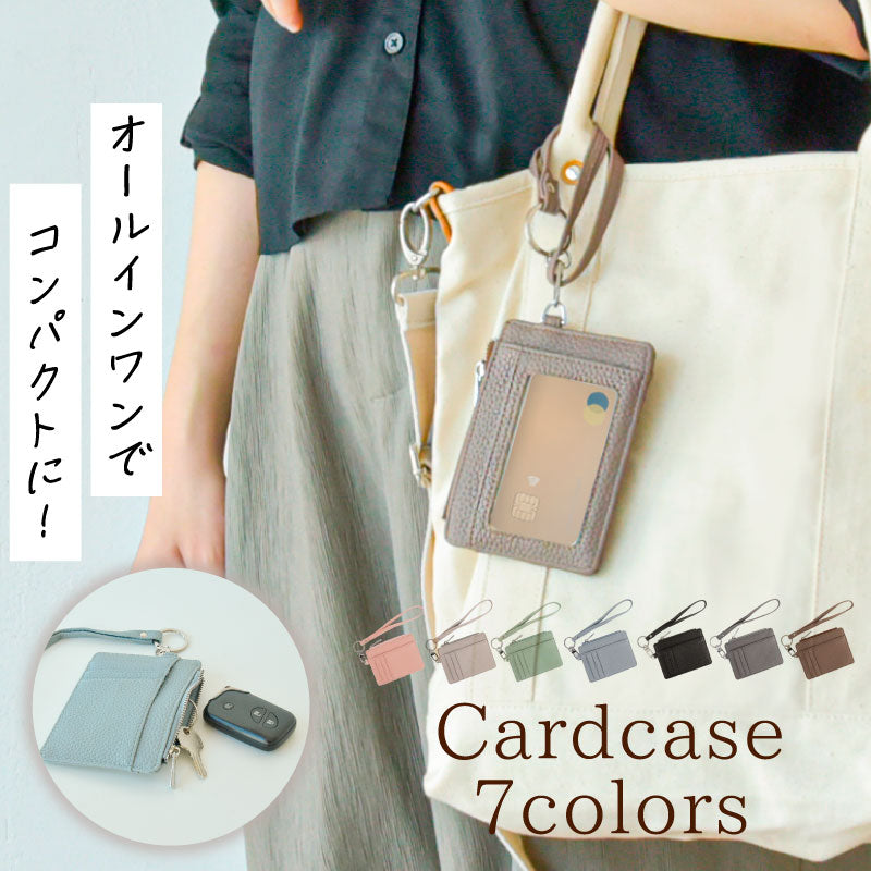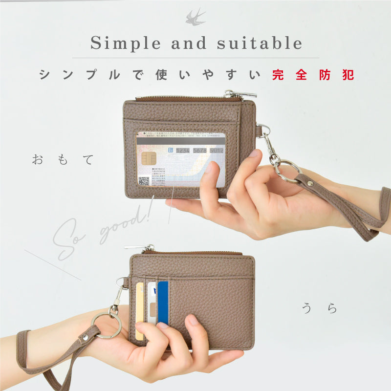 カード/パスケース ストラップ付き 盗難防止 ファスナー小銭入れ付き おしゃれ スモーキーピンク