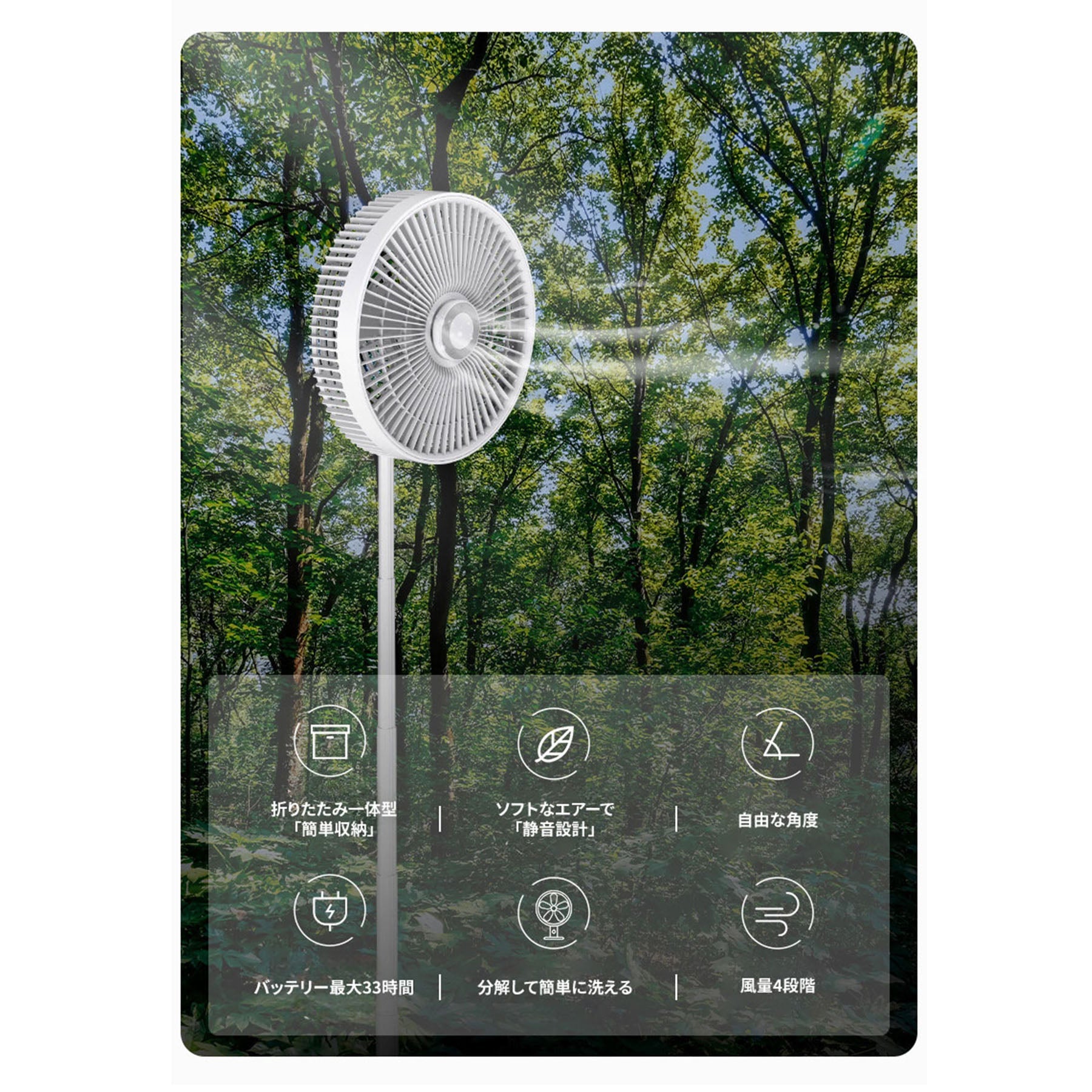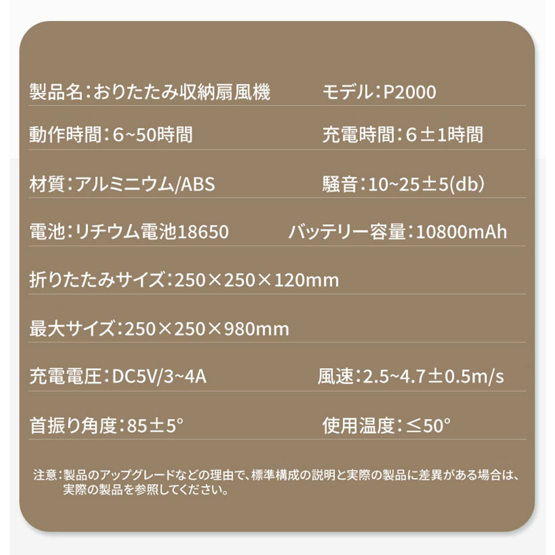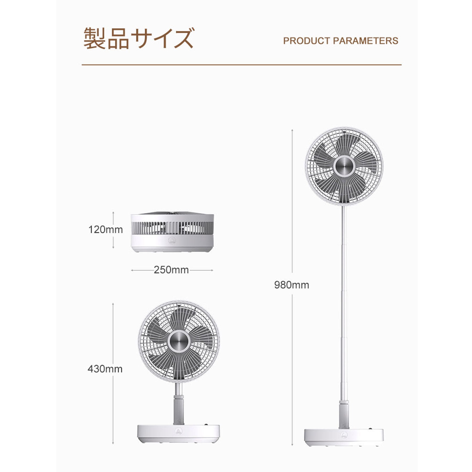 扇風機 5枚羽 P2000 折りたたみ コードレス 首振り 伸縮式 リモコン USB充電 タイマー付き 高さ調節 コンパクト 収納