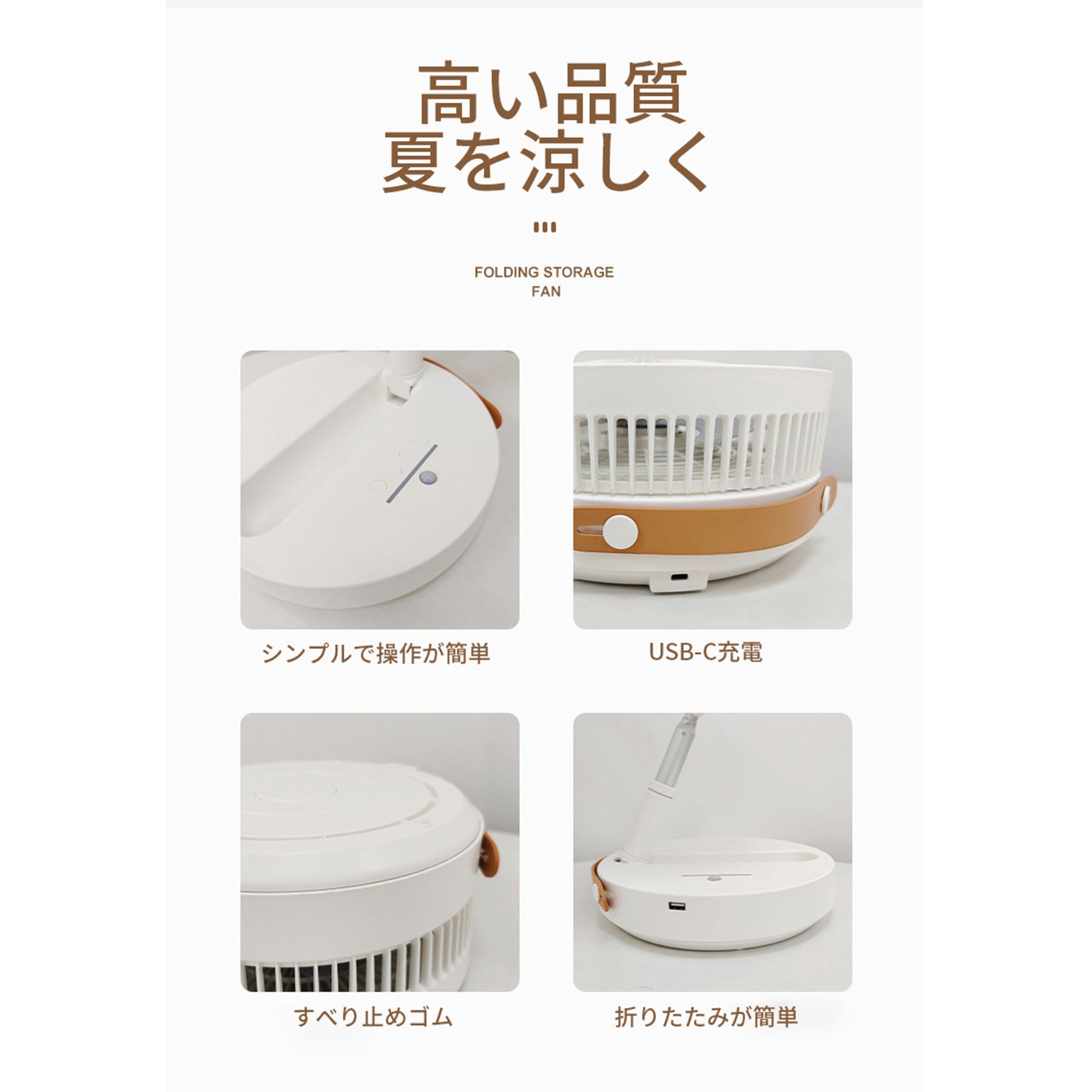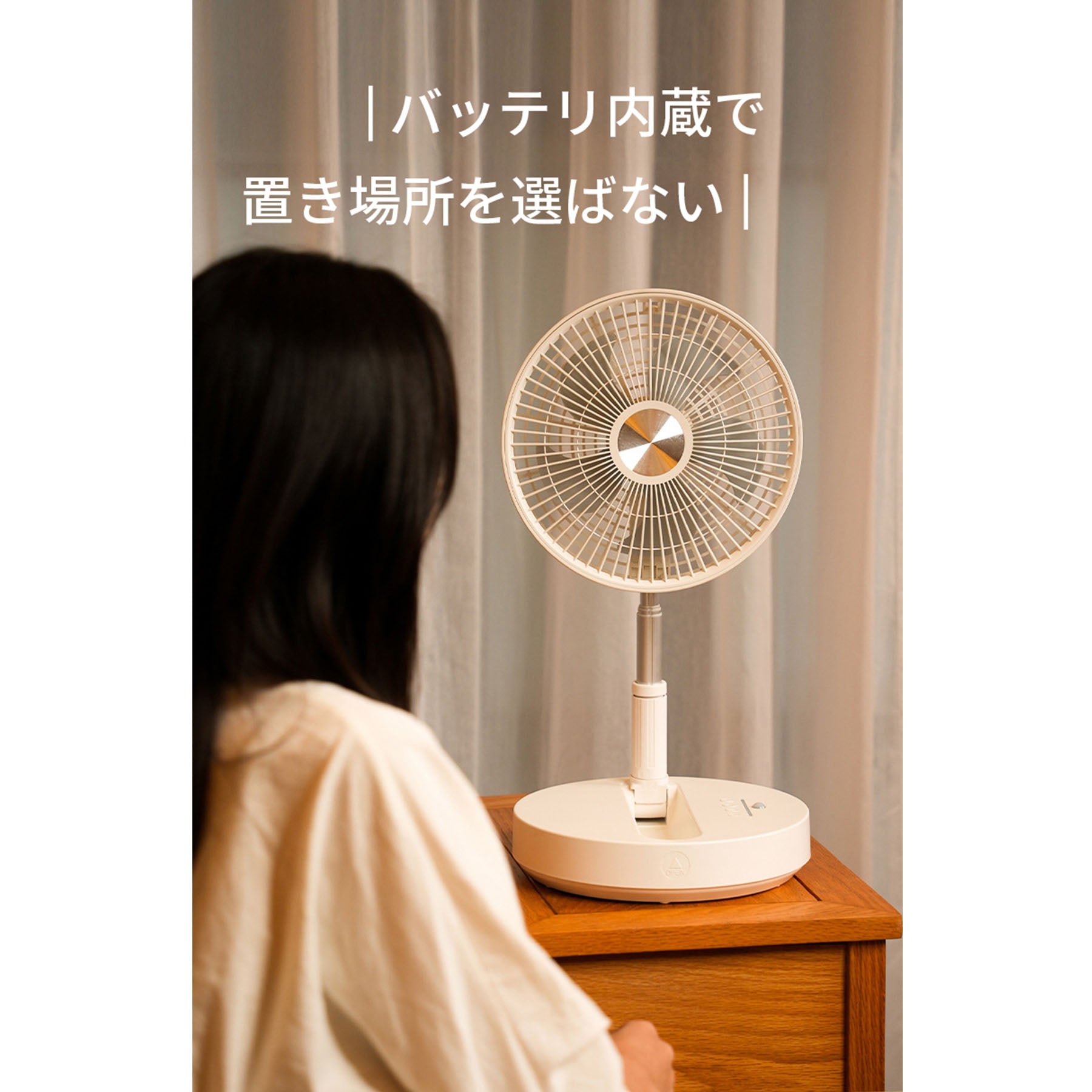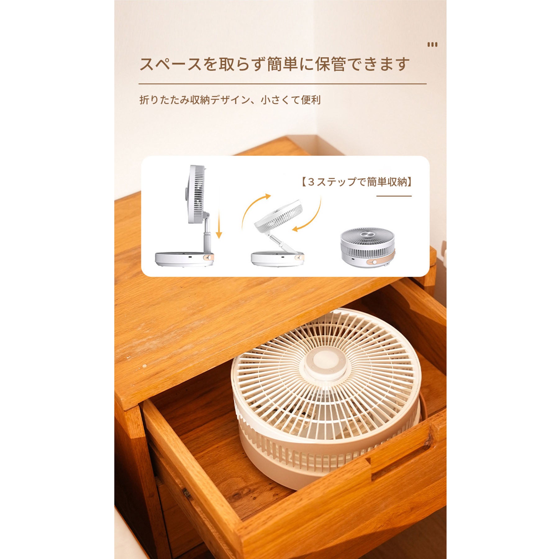 扇風機 5枚羽 P2000 折りたたみ コードレス 首振り 伸縮式 リモコン USB充電 タイマー付き 高さ調節 コンパクト 収納