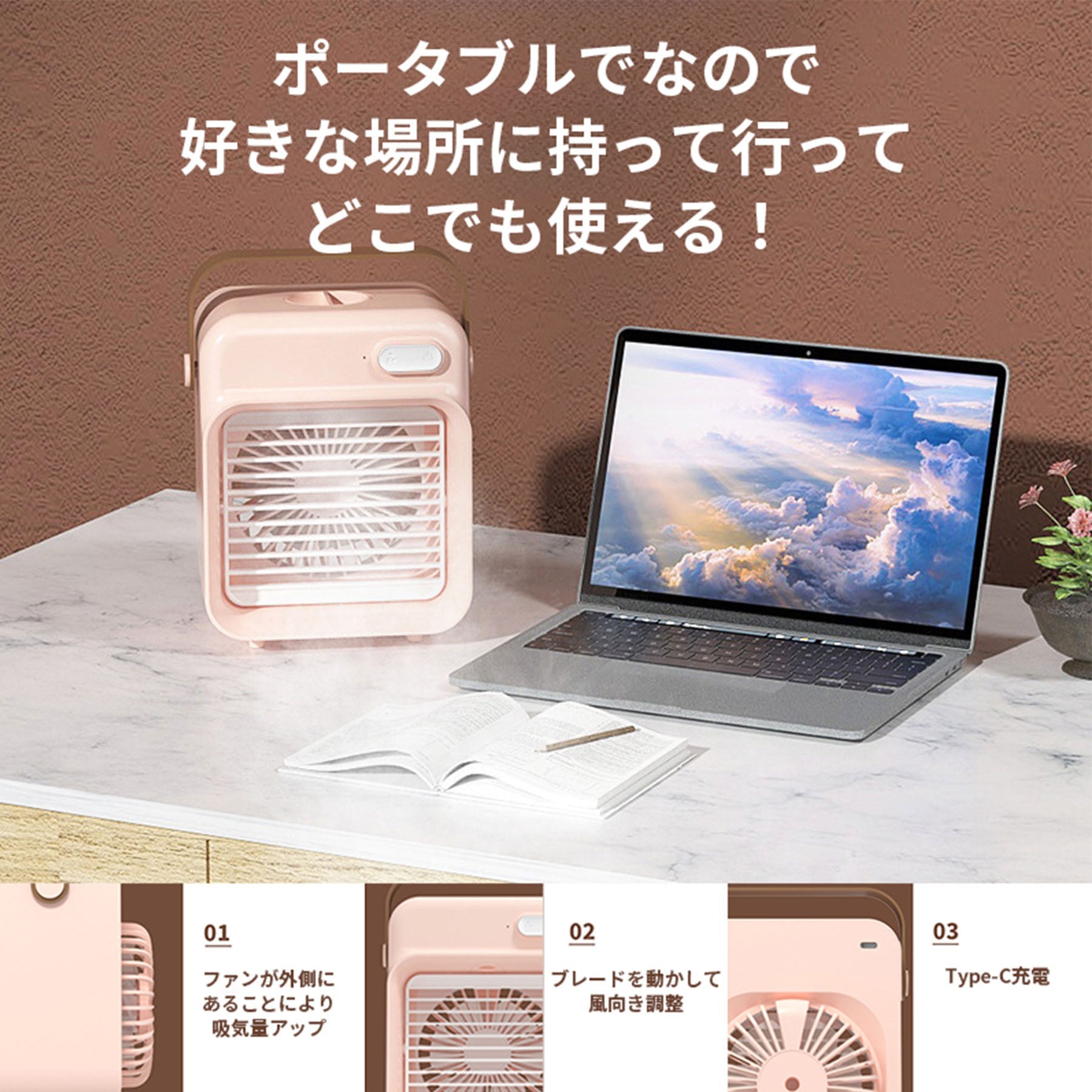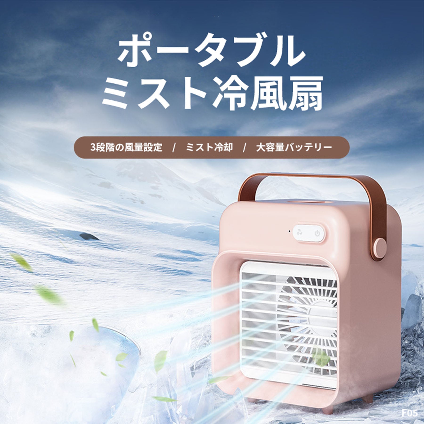 ミスト 冷風扇 ピンク F05 ポータブル スポットクーラー 卓上 小型 熱中症対策 暑さ対策 オフィス 寝室 アウトドア