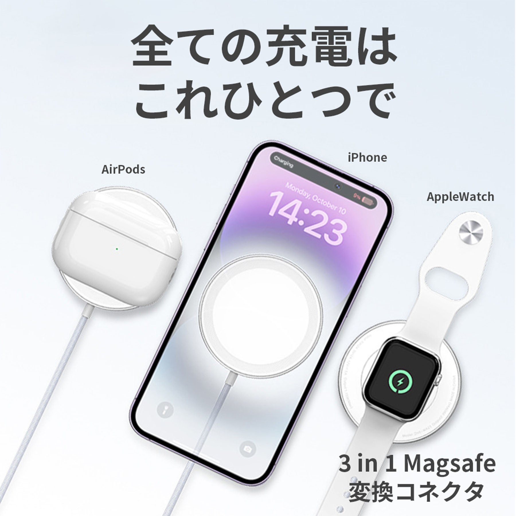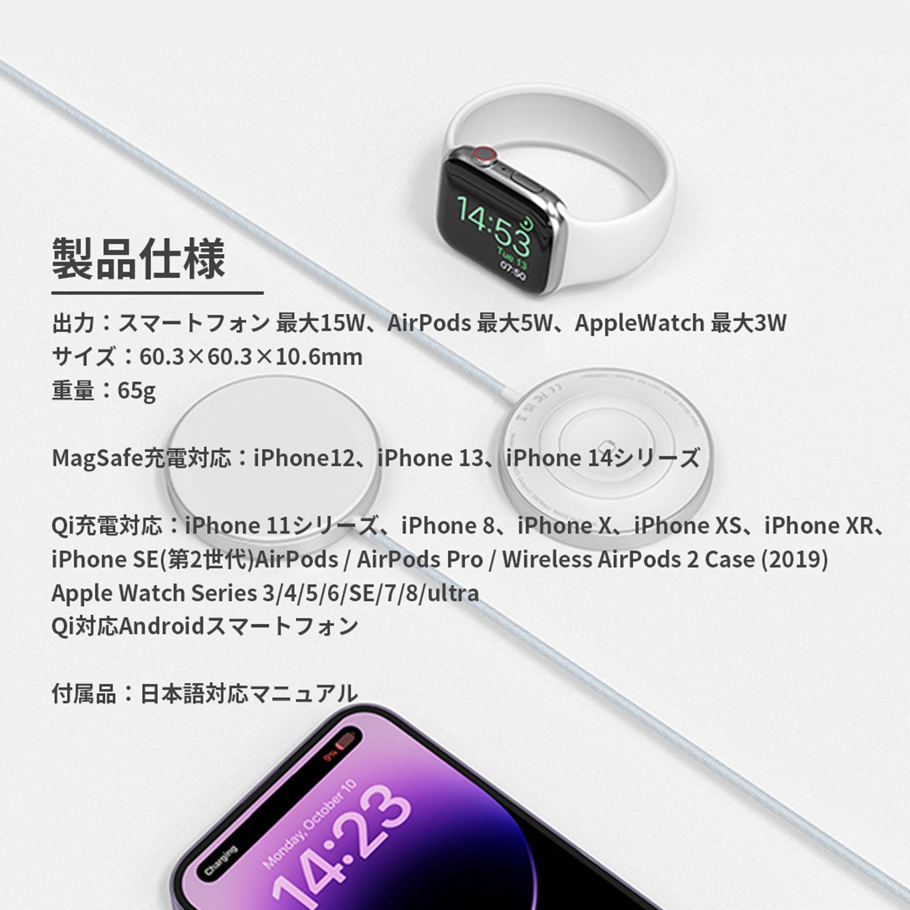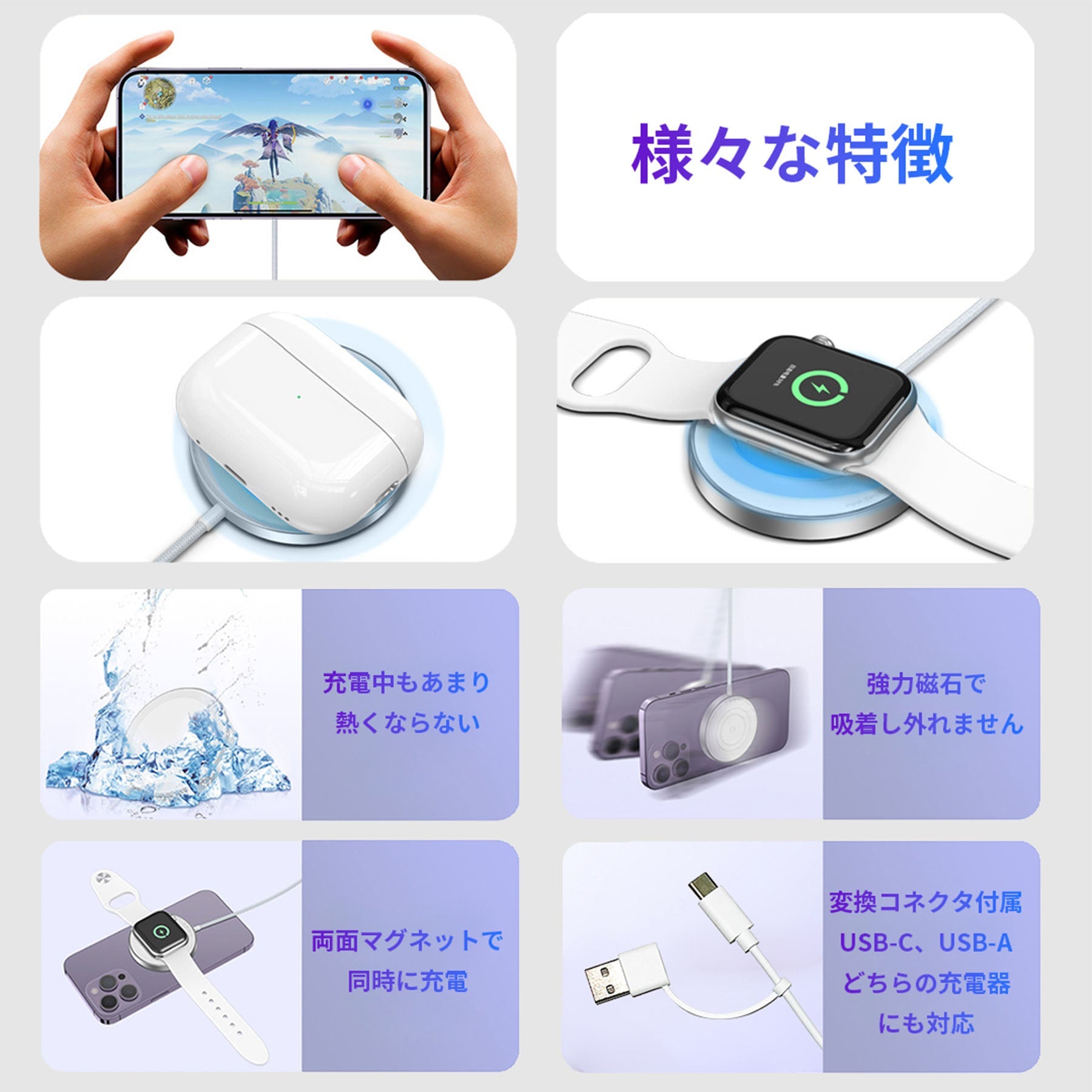 スマホ、AppleWatch、AirPodsのワイヤレス充電に。 |