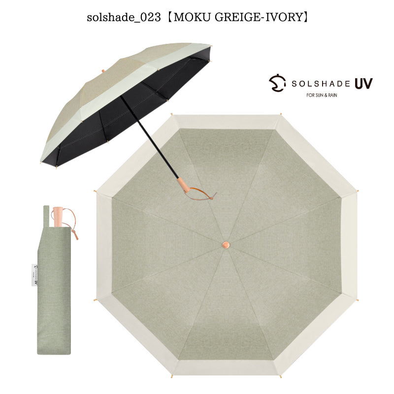 ●国内日傘ブランドsolshade ソルシェード・特殊2段折り設計により、美しいシルエットとワンアクションで折りたためる利便性を実現しました。・国内ブランド メーカー製品・遮光率100%・UPF50+・紫外線遮蔽率99.99% (第三者機関での測定試験済み)・ポキポキ折らないトップレス式収納・当社従来商品より4cm短く2段折りできっちりコンパクト収納・約260gの軽量設計・高撥水・耐風・美しいシルエット・天然木の持ち手グリップ・本革のストラップ・年齢を問わず愛用できる上品なカラーバリエーション
