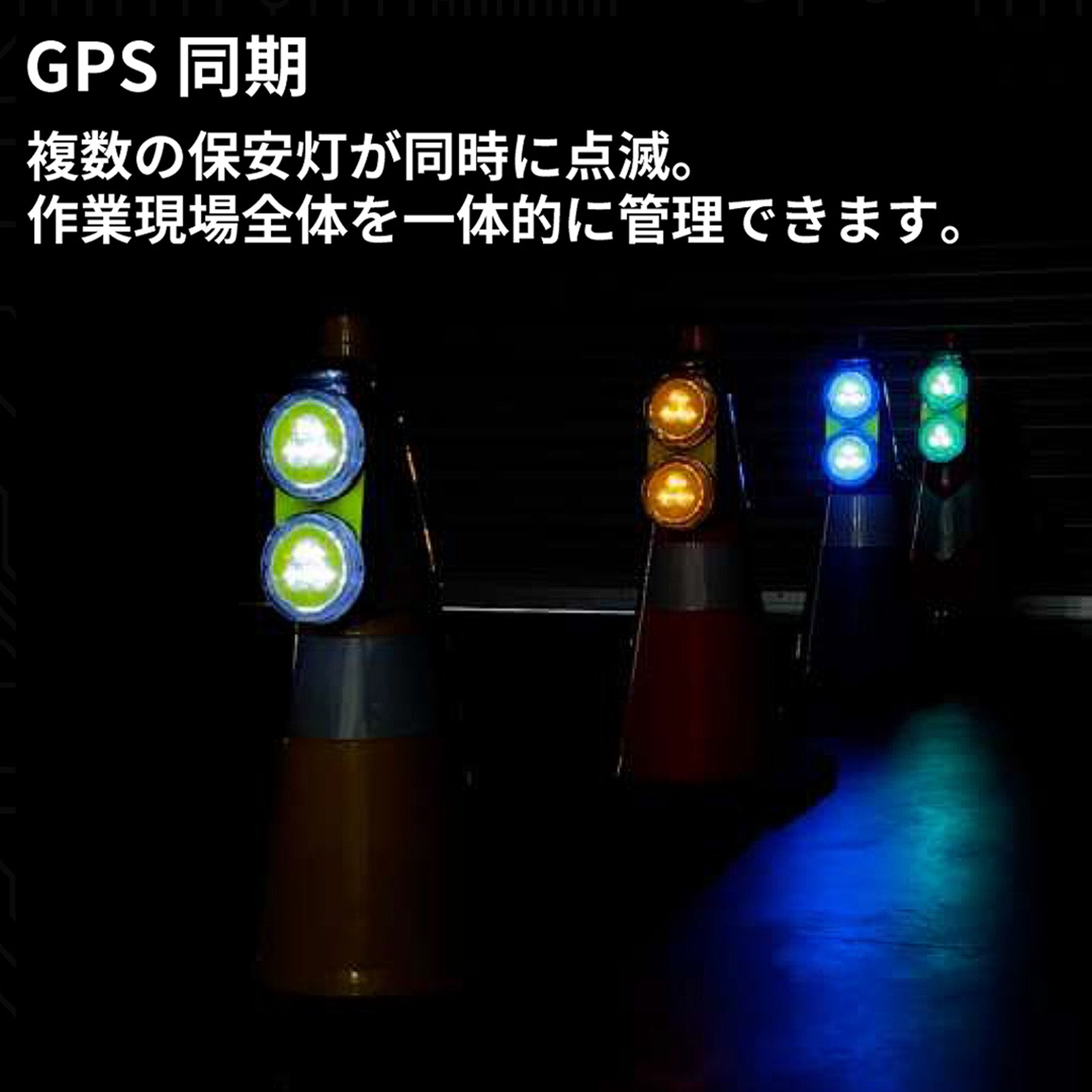 GPS 同期により複数の保安灯が同時に点滅。視認性が向上します。