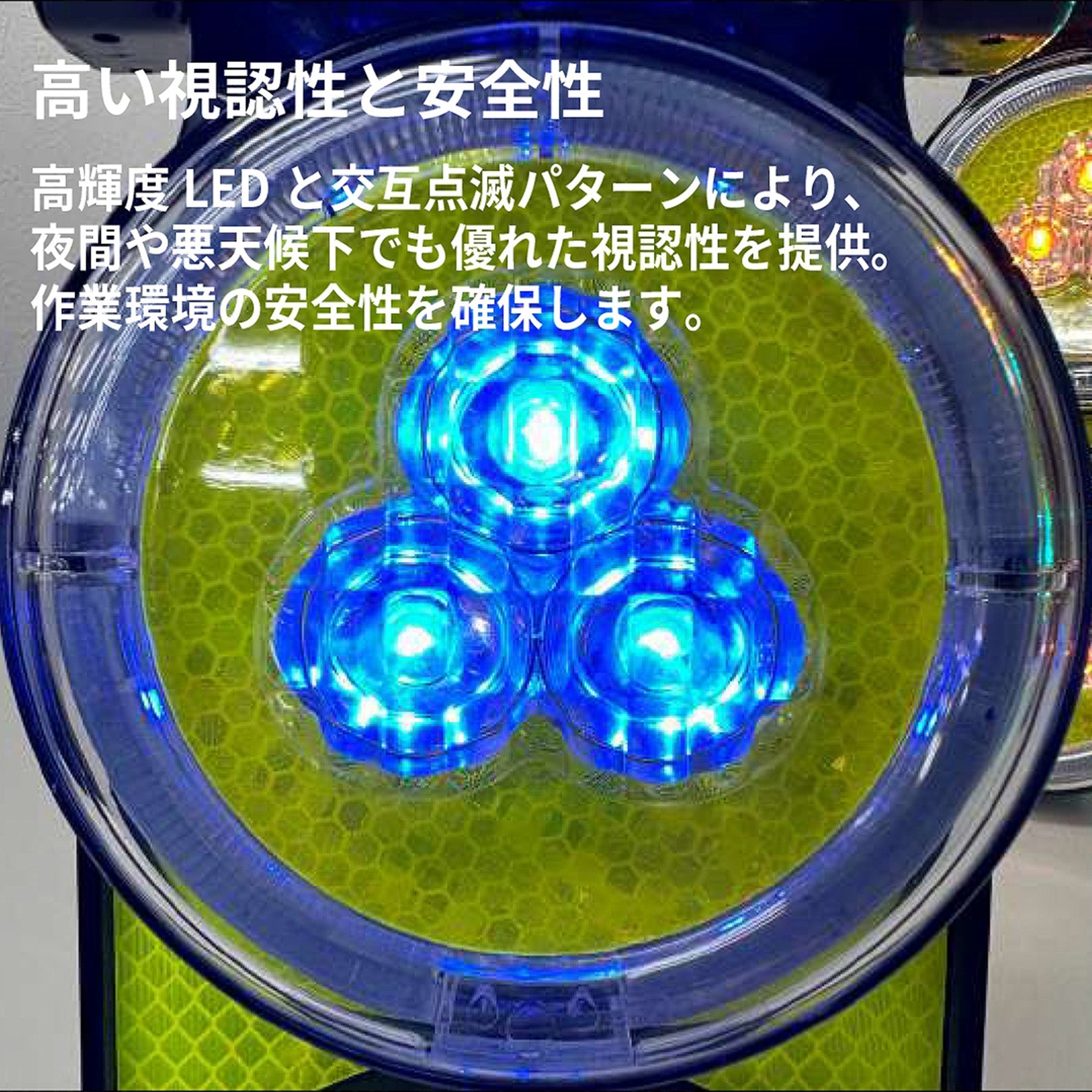 この保安灯は、10個の超高輝度LED を搭載し、夜間でも高い視認性を確保。