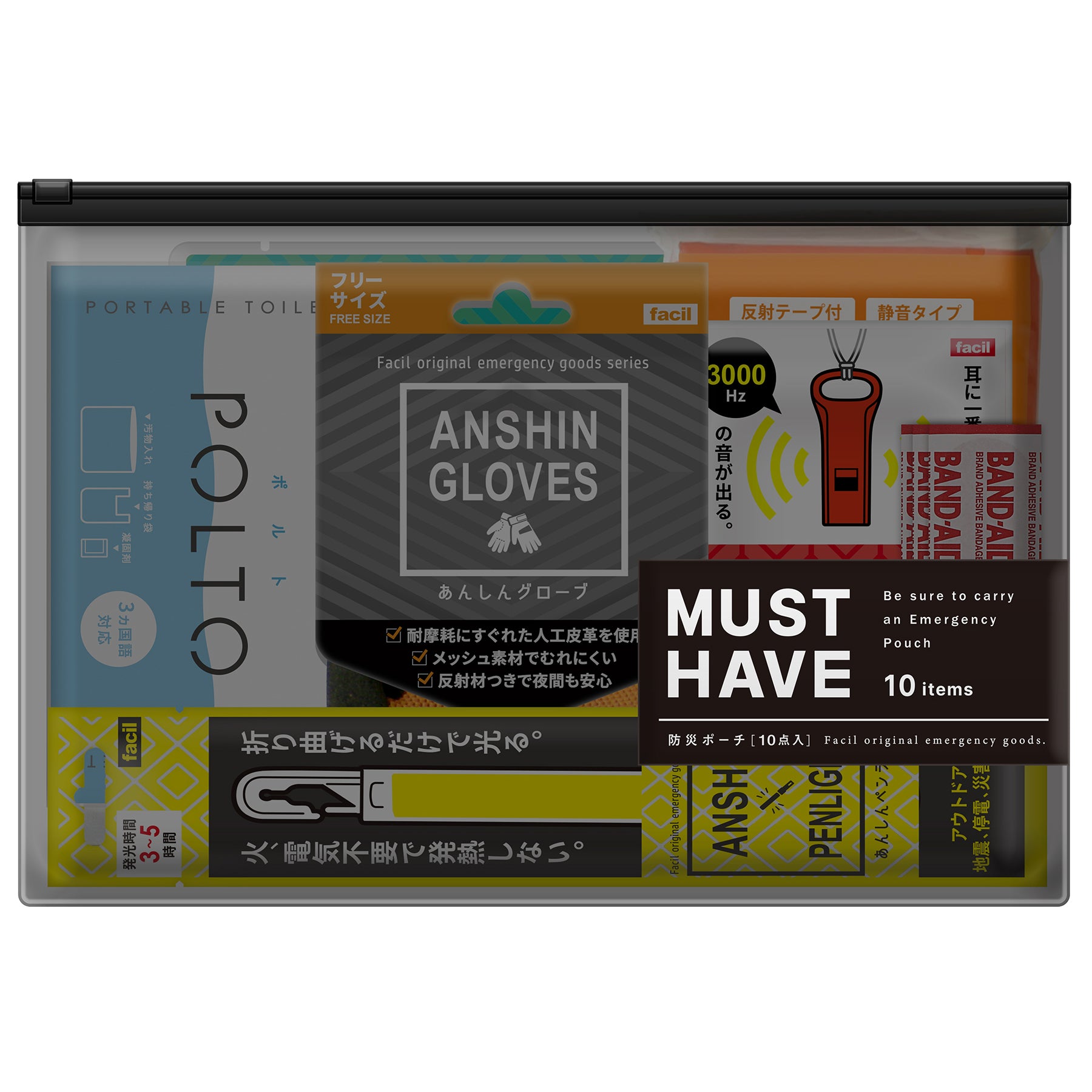 ●合計10点の防災用品が入った、気軽に持ち歩ける防災ポーチ。