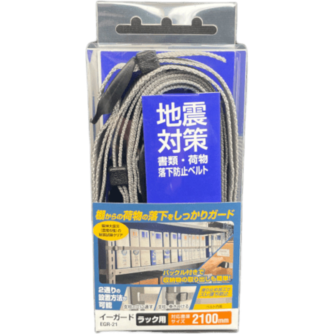 ●ラックの収容物の落下防止対策。ラックの支柱の穴に通す、支柱に巻き付けるの2通りの設置が可能。ベルトの巻き付け部分内側に滑り止め加工でズレ落ち防止。ワンタッチ樹脂で収容物の取り出しも簡単。
