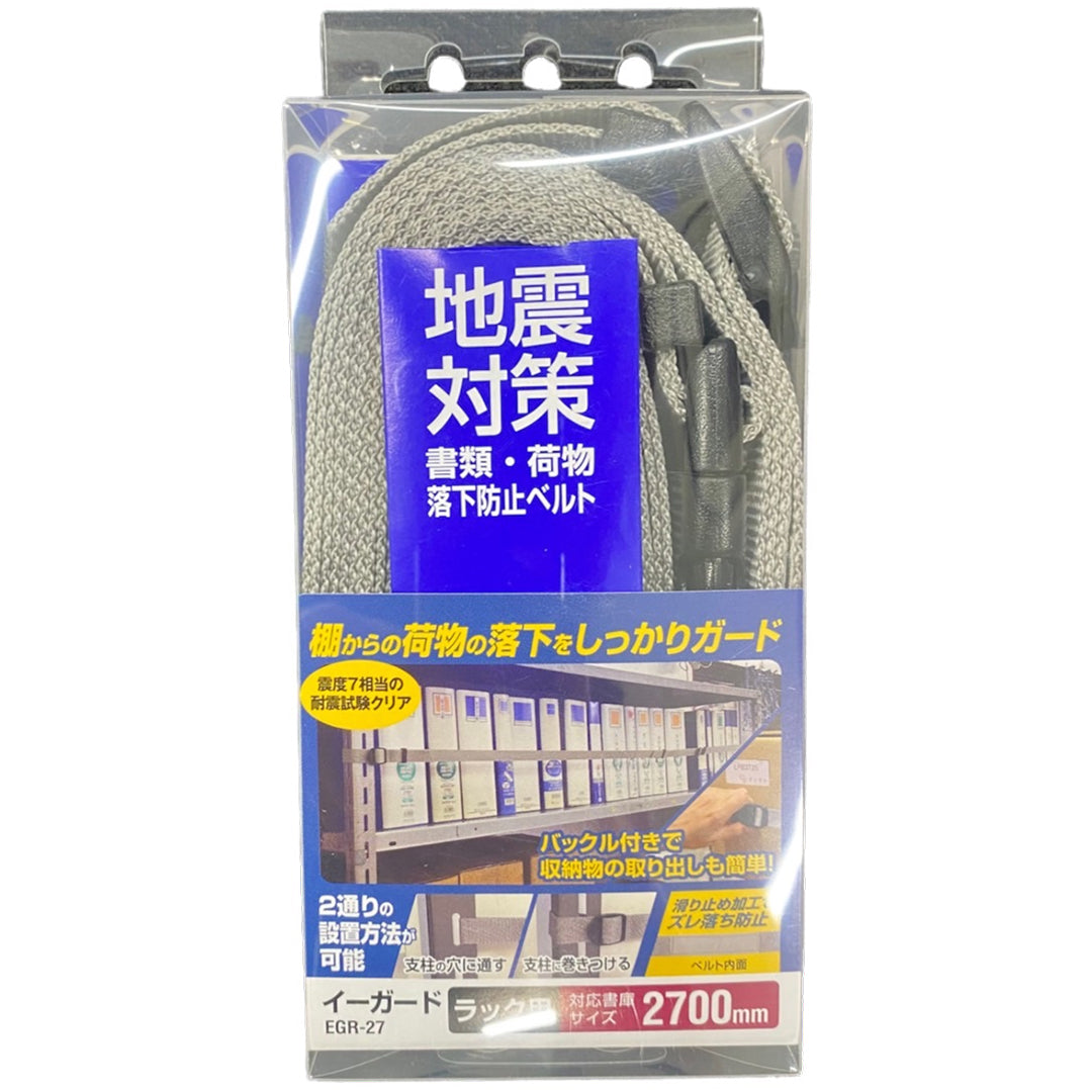 ●ラックの収容物の落下防止対策。ラックの支柱の穴に通す、支柱に巻き付けるの2通りの設置が可能。ベルトの巻き付け部分内側に滑り止め加工でズレ落ち防止。ワンタッチ樹脂で収容物の取り出しも簡単。