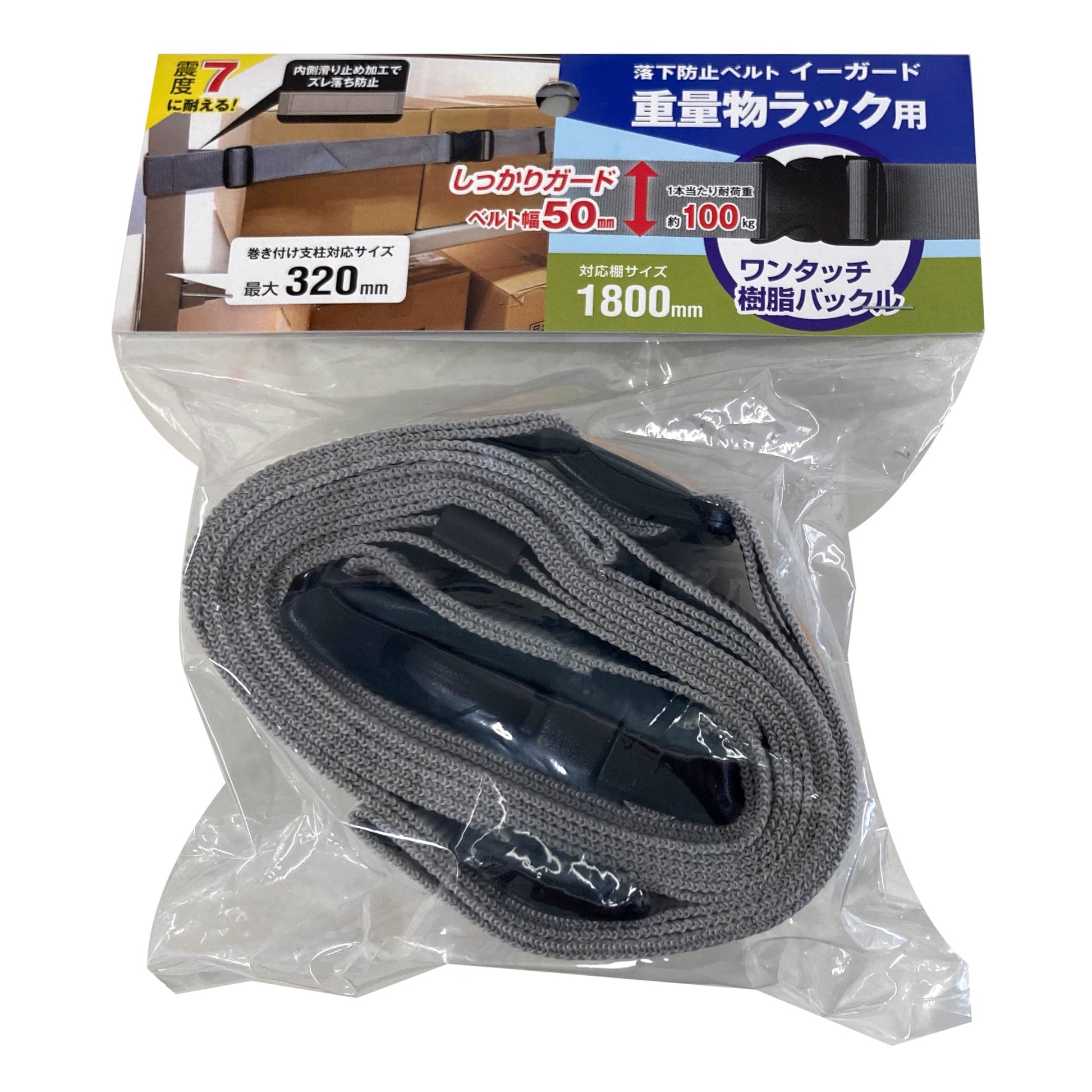 ●ラックの収容物の落下防止対策。ラックの支柱に巻き付けて設置。ベルトの巻き付け部分内側に滑り止め加工でズレ落ち防止。