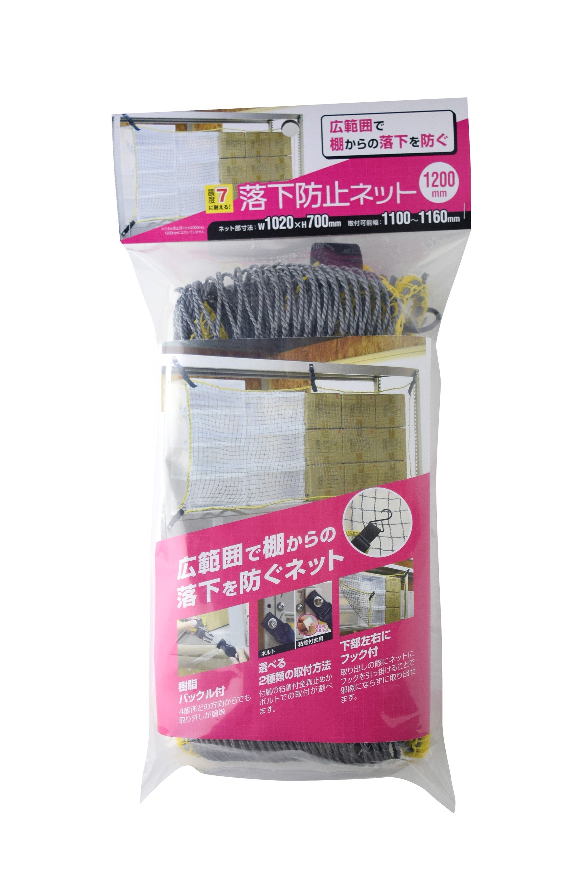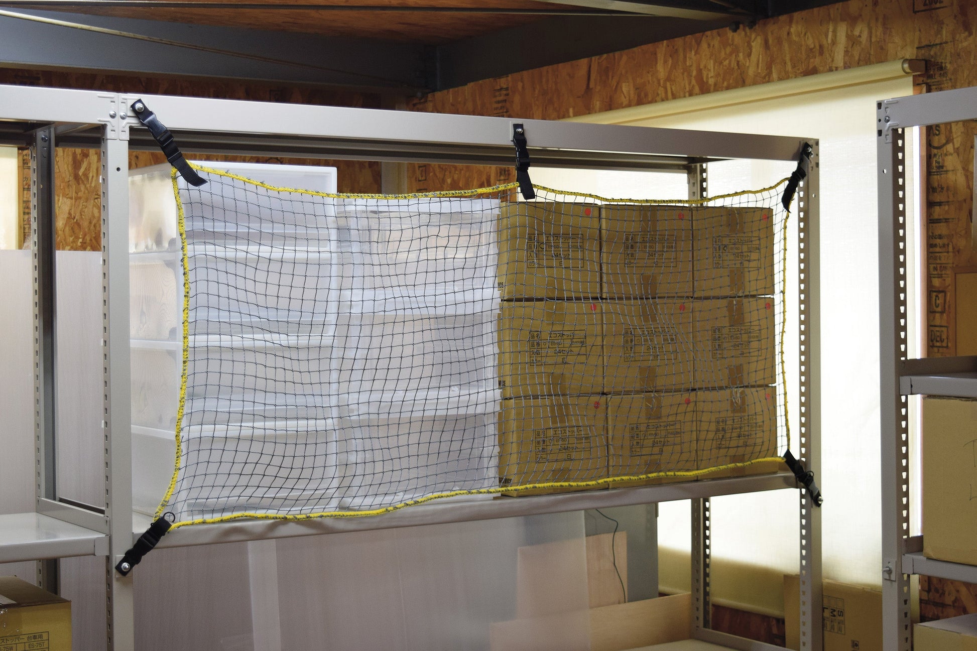 ラック等の収容物の落下防止対策に。 |