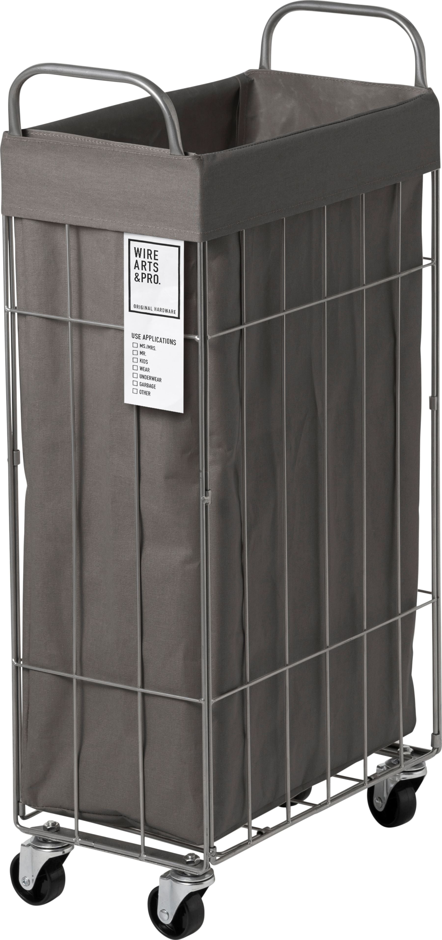 折りたたみ可能ランドリーバスケット キャスター付き スクエア 40L ダークグレー
