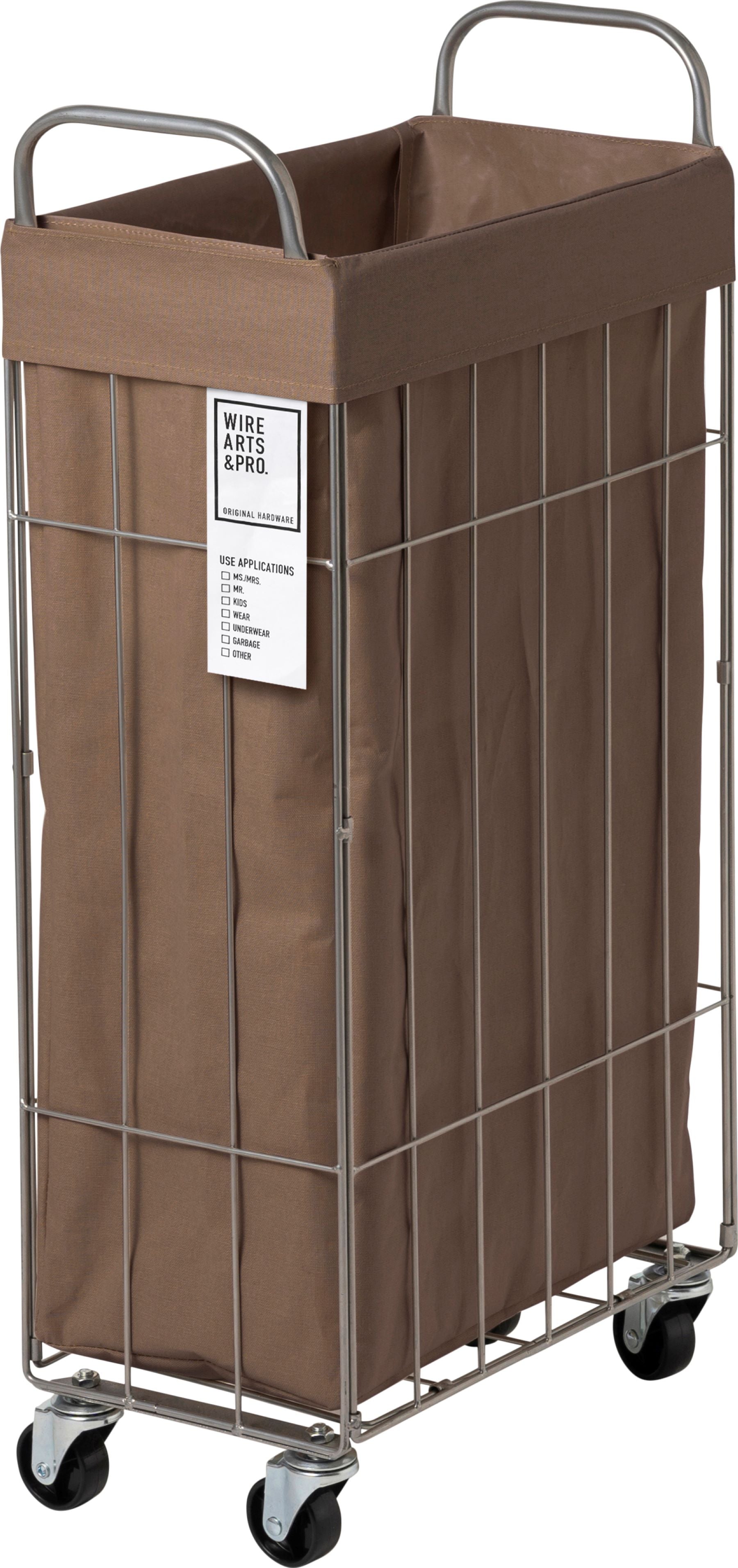 折りたたみ可能ランドリーバスケット キャスター付き スクエア 40L ブラウン