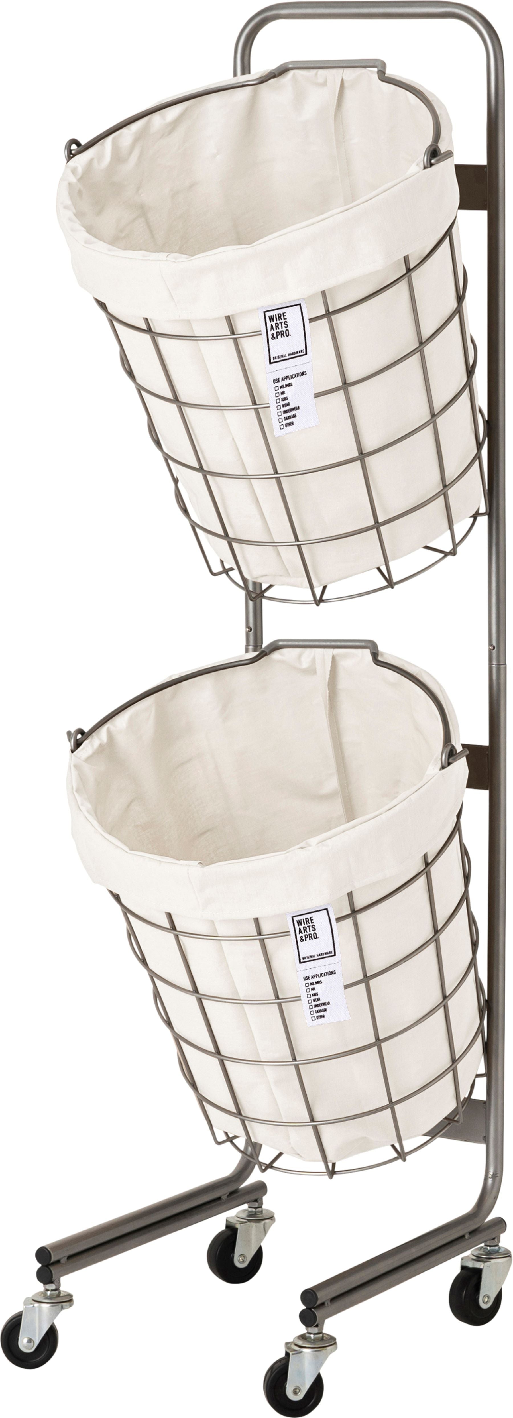 ●他のお部屋に比べ比較的狭く設計されている日本の洗面脱衣ルームには、容量たっぷりの縦型2 段ランドリーバスケットが 効率よく活用できます。季節によって使い方を工夫できたり、種類別にご使用できたりと、使い方の幅も広がります。また、 バスケットにはそれぞれハンドルが付属しており、単品で持ち運ぶ事もできます。スタンド下部のフロント部分が空いている ので、すっきりとした印象を与えてくれるランドリーバスケットです。