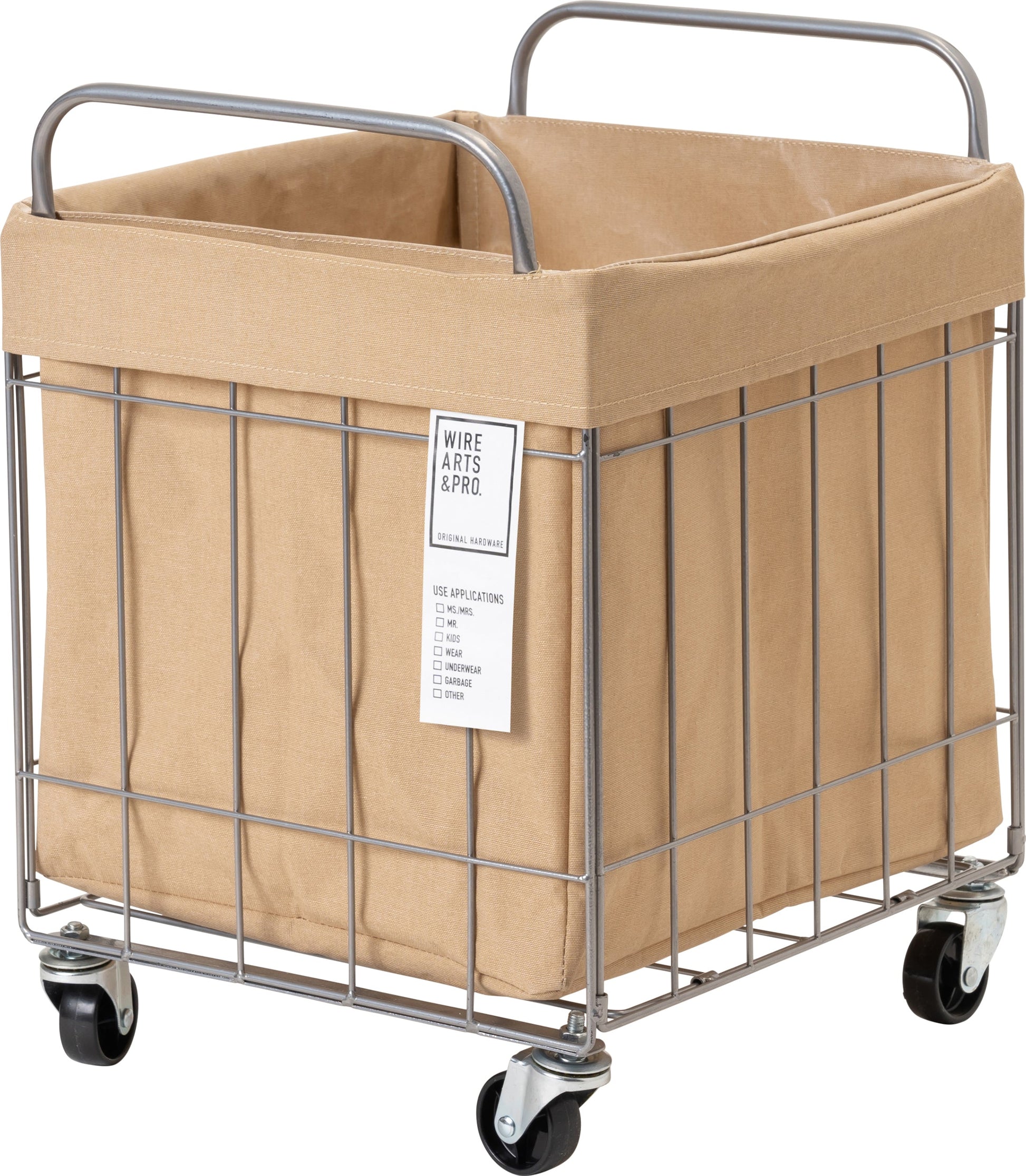 折りたたみ可能ランドリーバスケット/ワイド キャスター付き 40L ベージュ