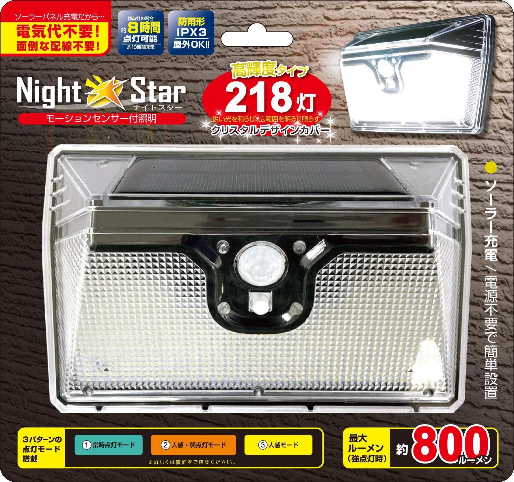 ●人感&明暗センサー、自動点灯。高輝度ライト、218灯。