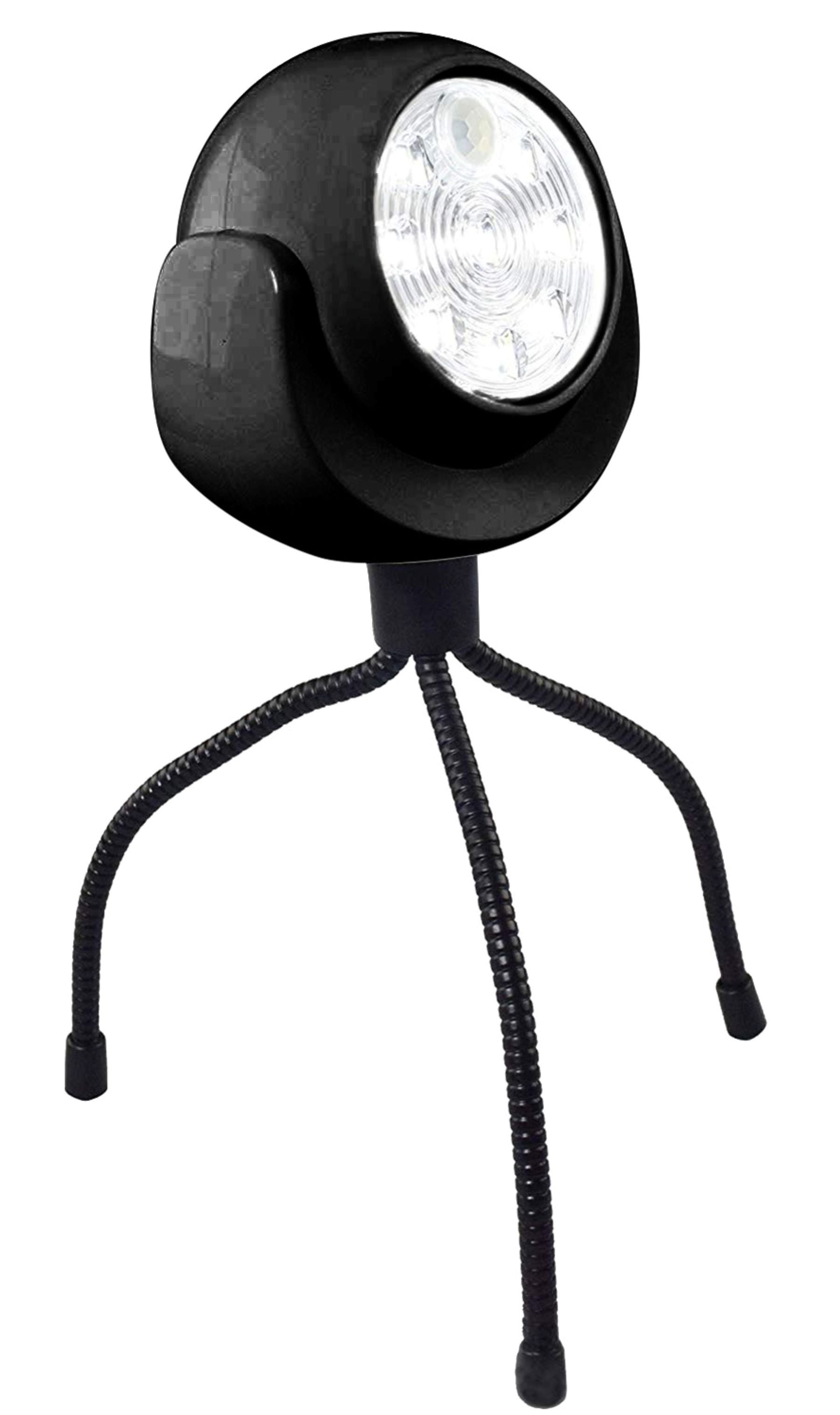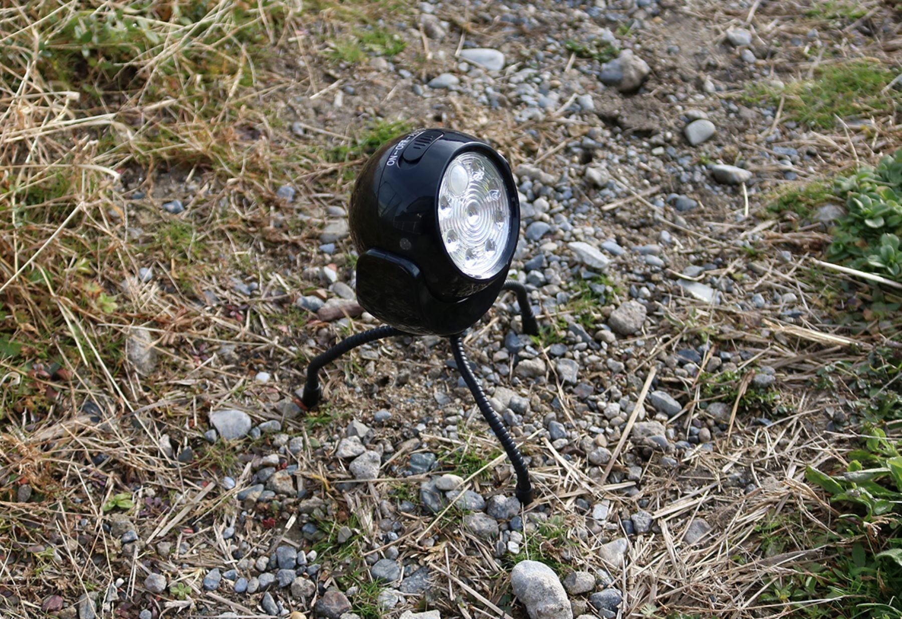 ●曲がる三脚と上下左右に角度を変えられる球体型ライト。
