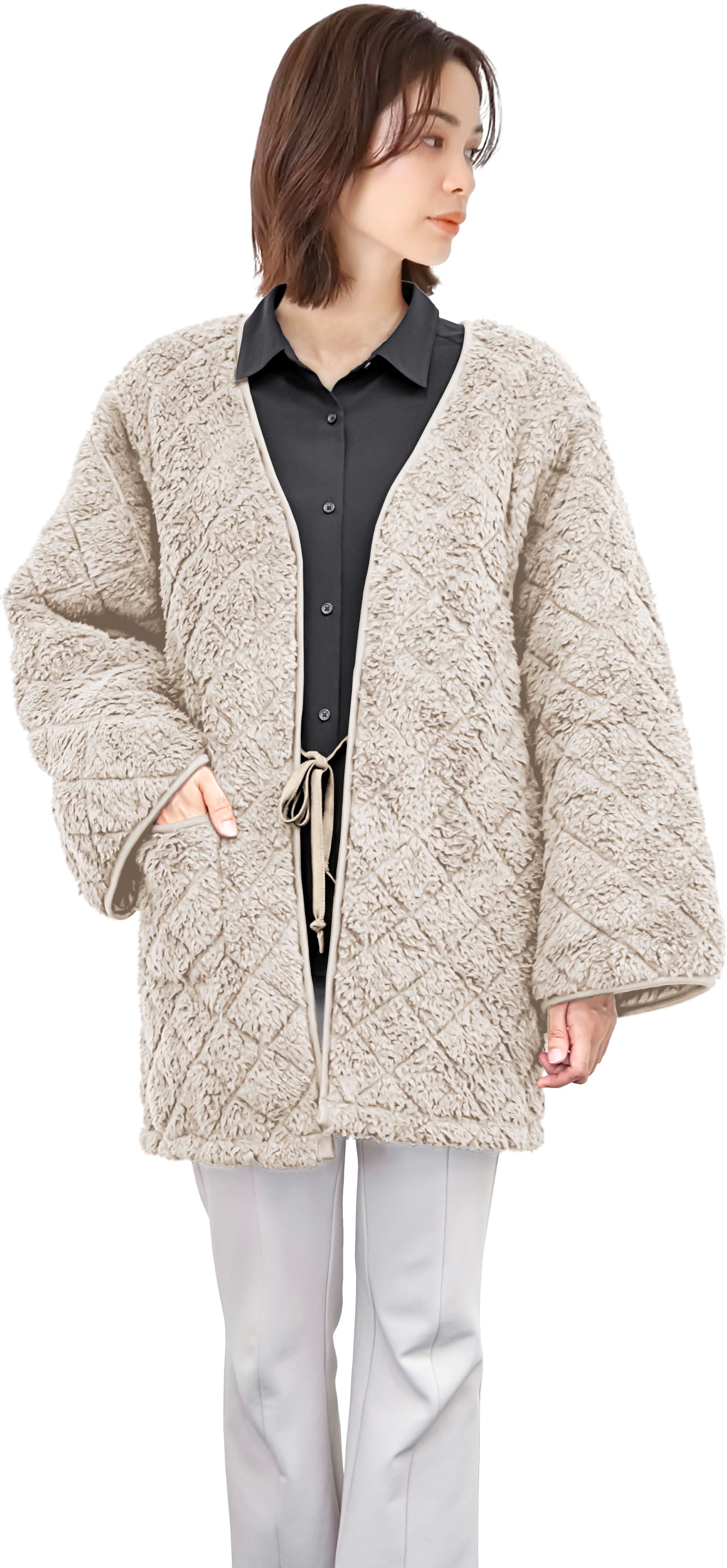 もこふわボア半纏(はんてん) ベージュ
