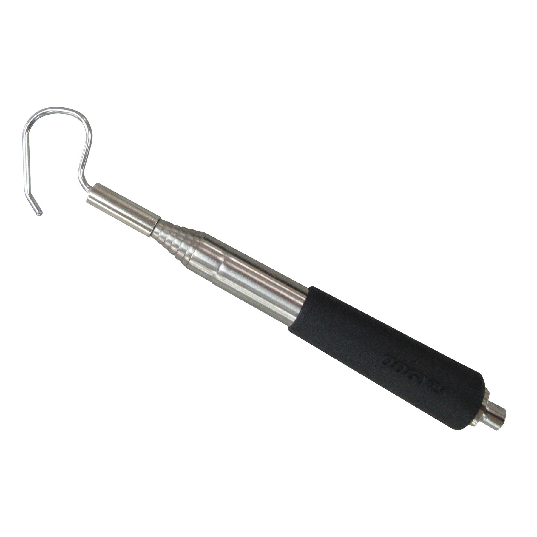 ●手では届かない、入らない場所で配線作業をする時に活躍します。サイズは、腰袋やポケットに入るコンパクトサイズで、形状も一度引っかかると抜けにくいフック形状となっています。具体的なサイズは、最短で165mm、最長で520mmとなっています。シャフト部には8段伸縮ステンレス管を採用しており、ゴムグリップ加工も施されています。