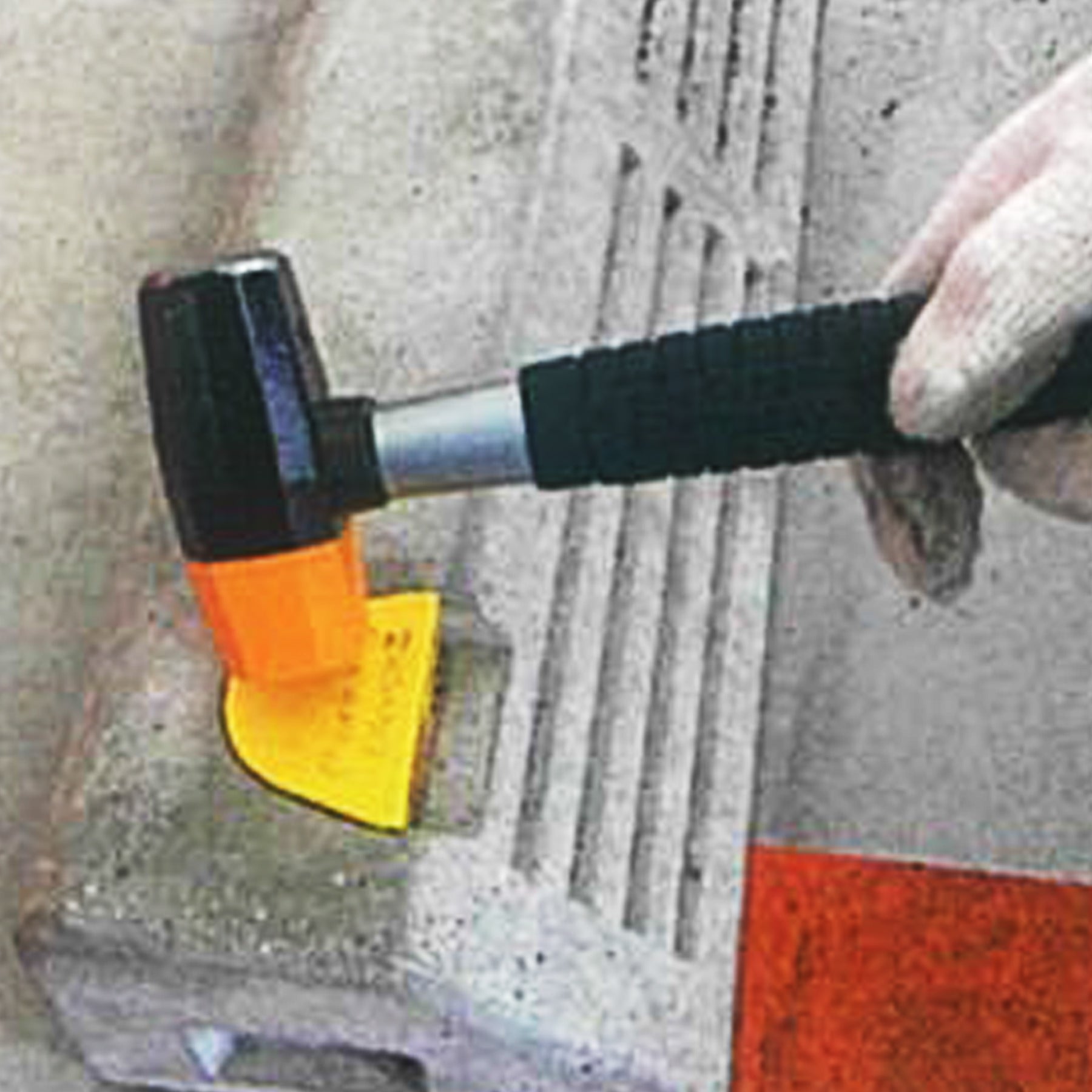 ●落下防止コード取付用金具付きで、柄がパイプ製のハンマーです。外溝作業やインターロッキング補修作業、金型作業に適しています。打撃音があまりしないような加工がされており、且つ強靭で柔軟なプラスチック素材を使用しているので、対象物を傷つけにくくなっています。