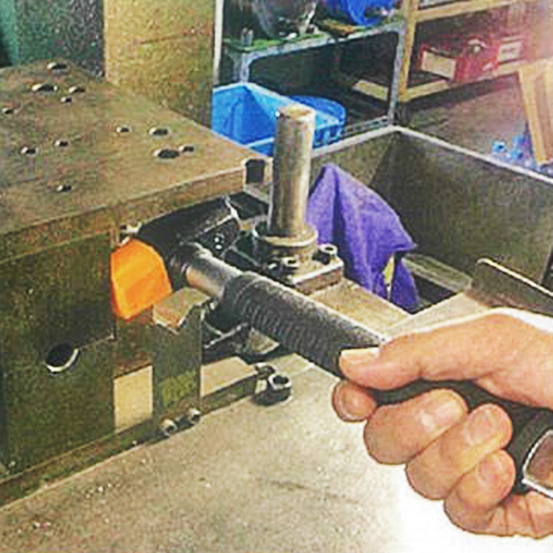 使用前には、点溶接に外れやガタツキがないか及び柄部分にヒビやサビがないかを確認してください。ゴムグリップがすり減っていたり破れていたりしたら交換してください。金具の変形、破損があれば使用しないでください。 |