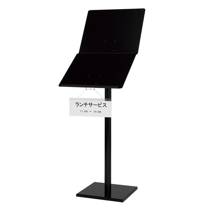 透明クリアファイル上部に、ひもを通す穴があるので、透明クリアファイルにひもを通し、メニュースタンド本体に付属しているSカンを用いてお使いください。