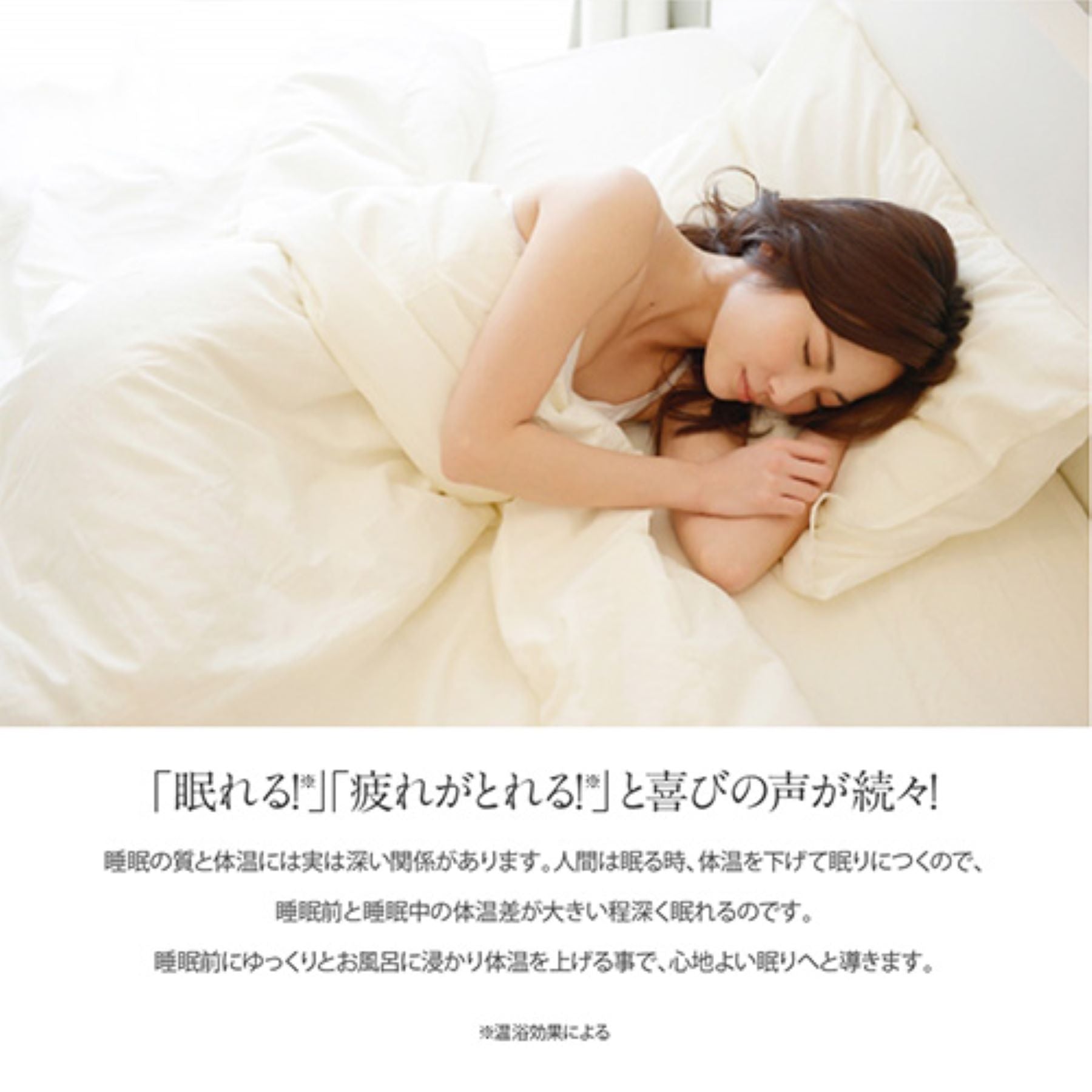 36~41℃以下のぬるめのお湯で、15分以上ゆっくり入ってください。 160ℓの浴槽で3錠使用、大型の浴槽(180~200ℓ)では4錠お使いください。 |