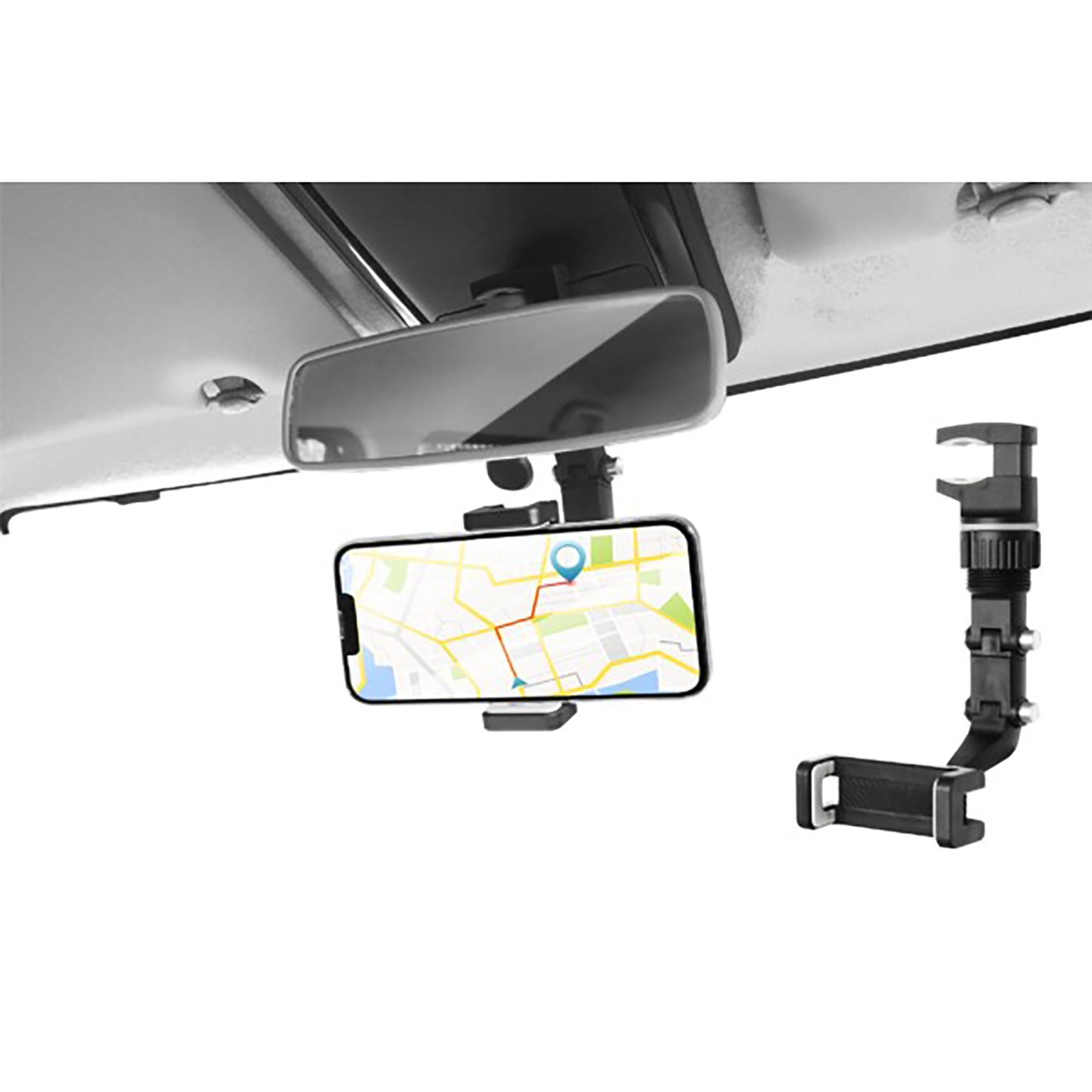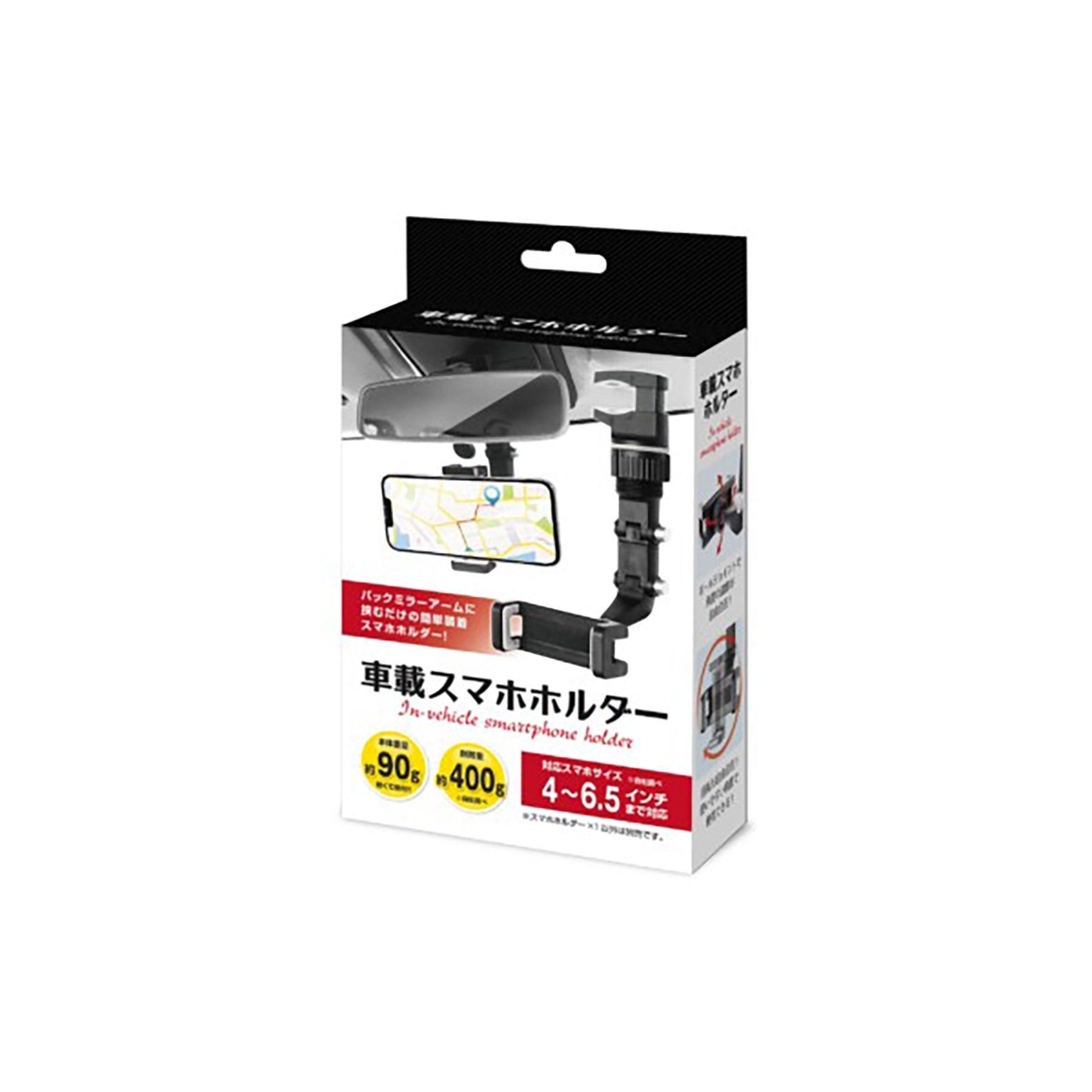 バックミラーアームに挟むだけで車にスマホを簡単に固定することができます。