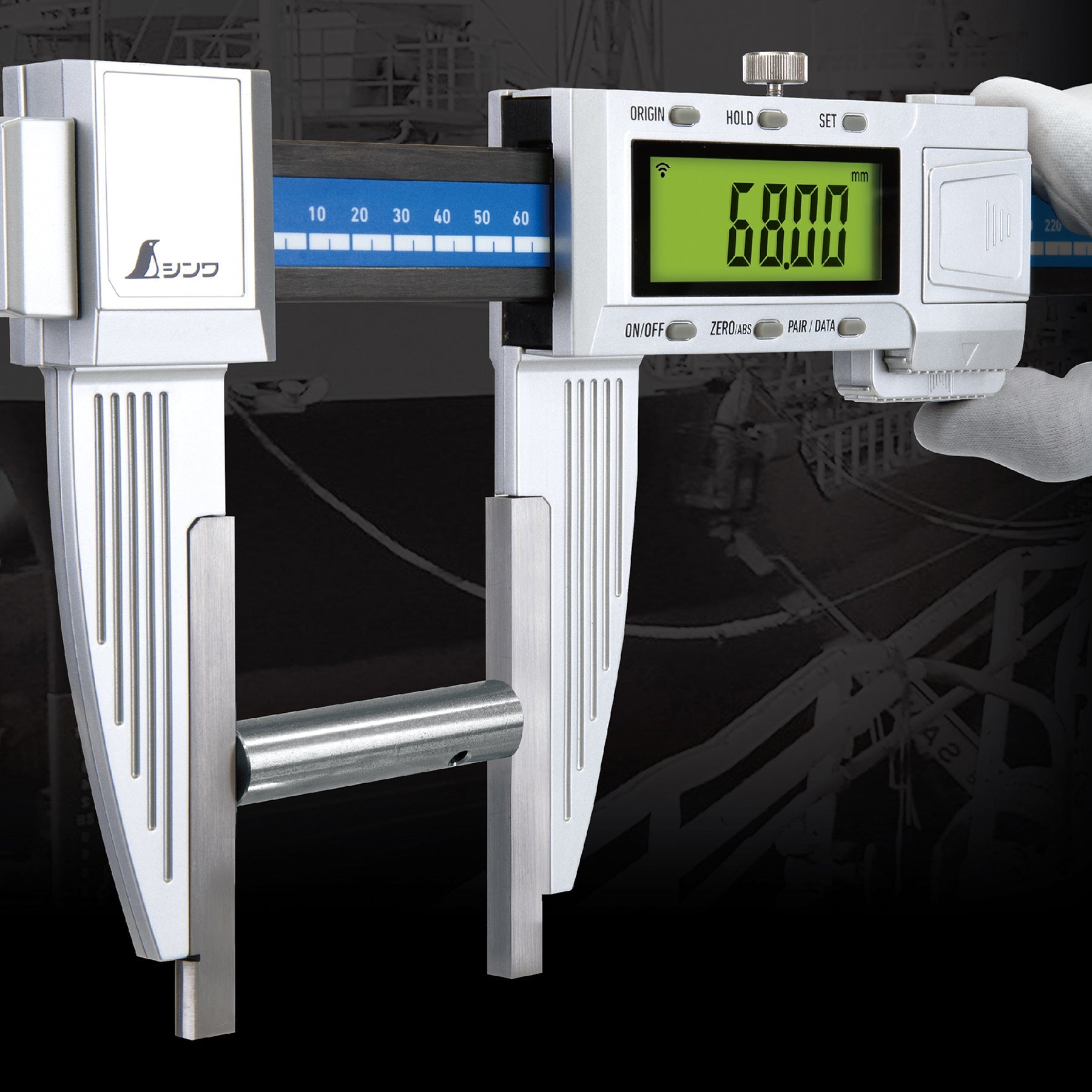●大型のノギスですが本尺部はCFRP樹脂なので軽量で、持ち運びに便利です。