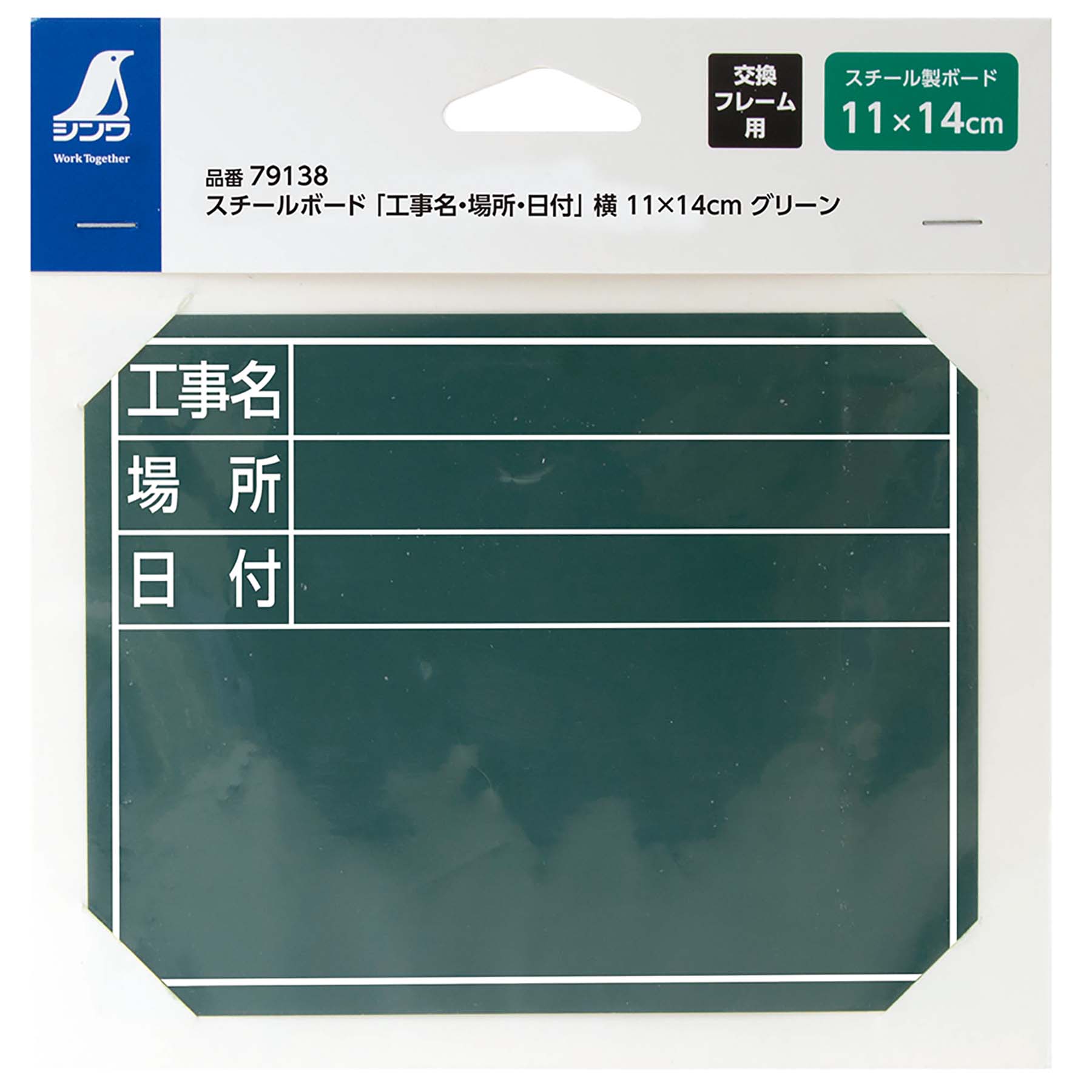 スチールボード「工事名・場所・日付」横11×14cmグリーン