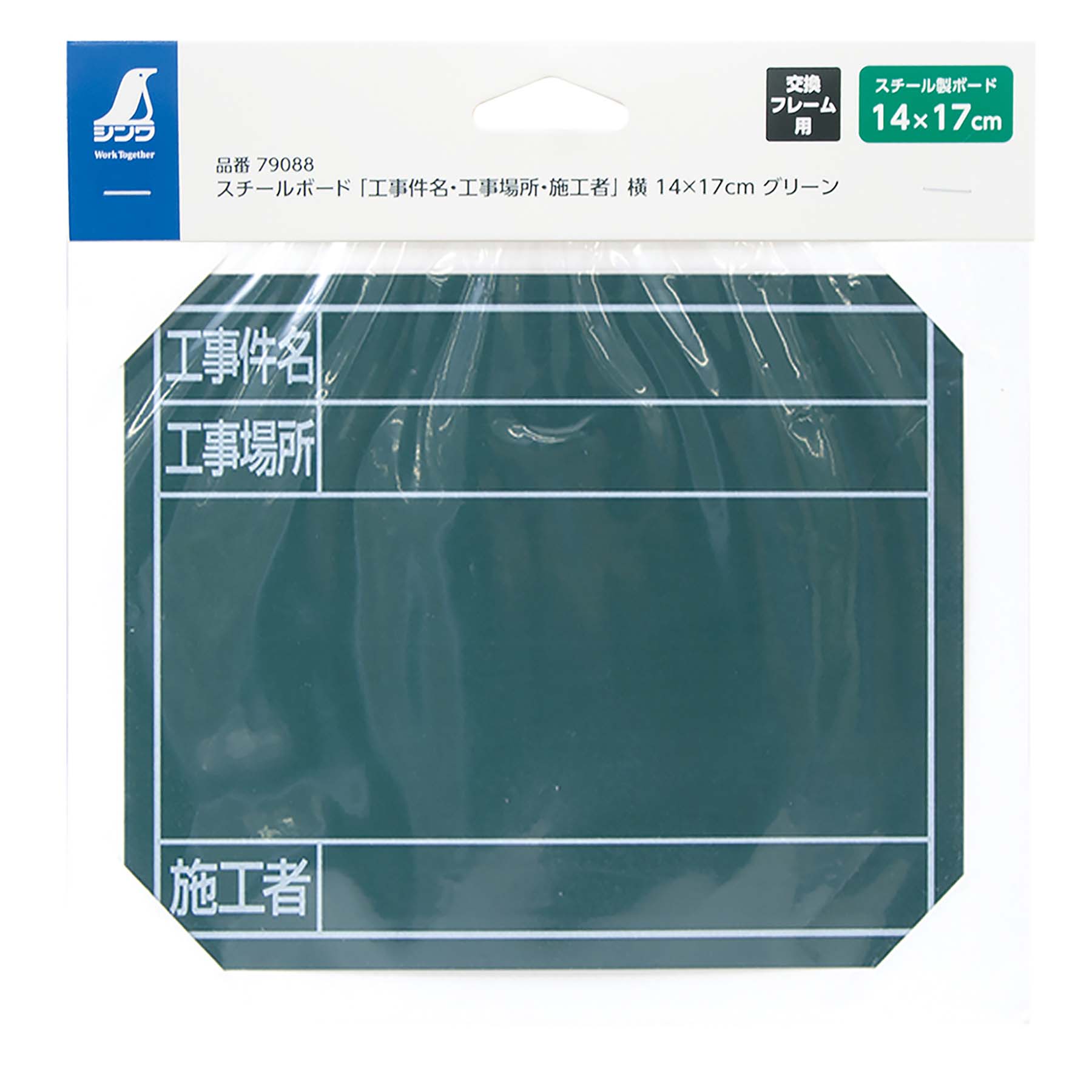 スチールボード「工事件名・工事場所・施工者」横14×17cmグリーン