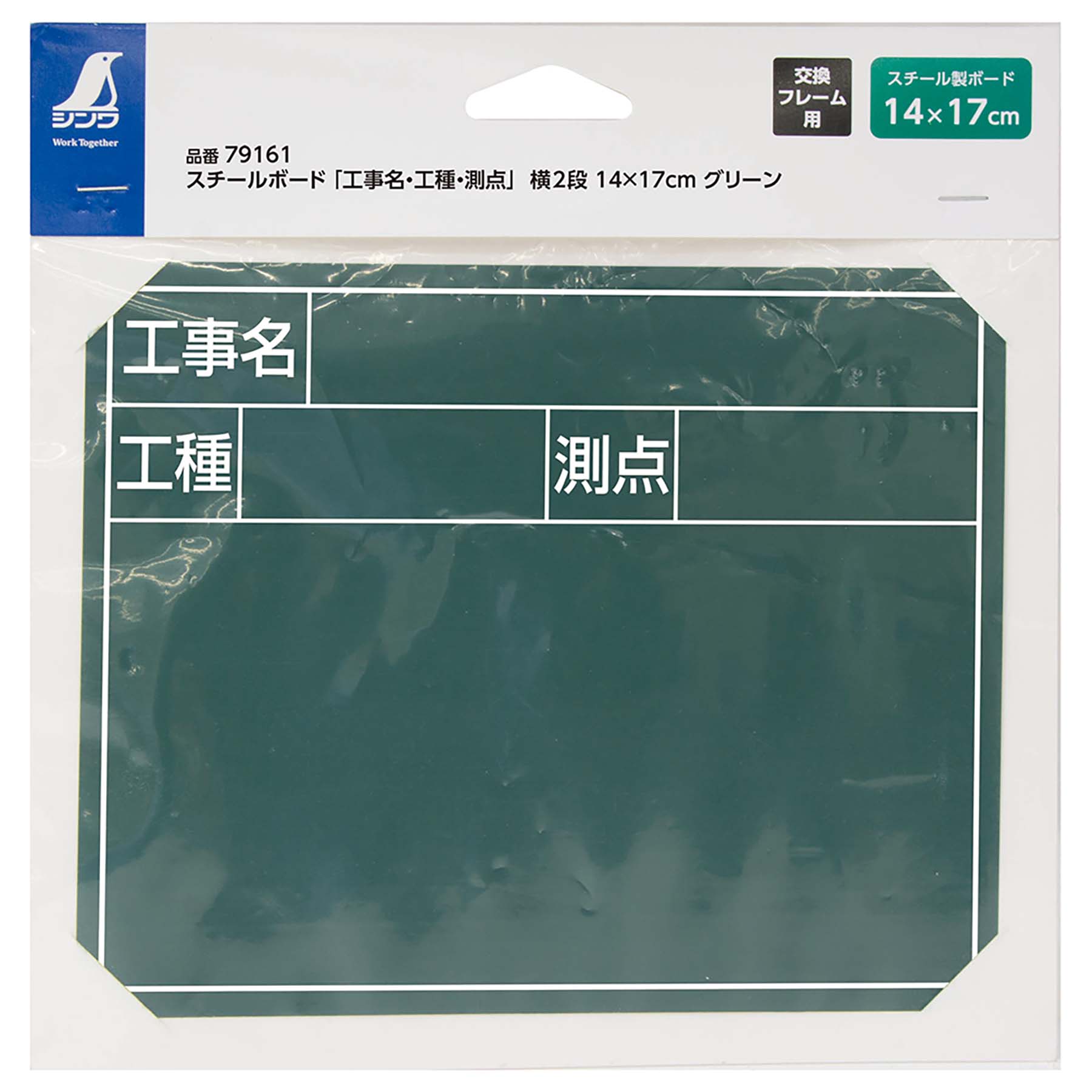 |   | スチールボード「工事名・工種・測点」横14×17cmグリーン | 1,360 円(税込) / 1,236 円(税抜) | |