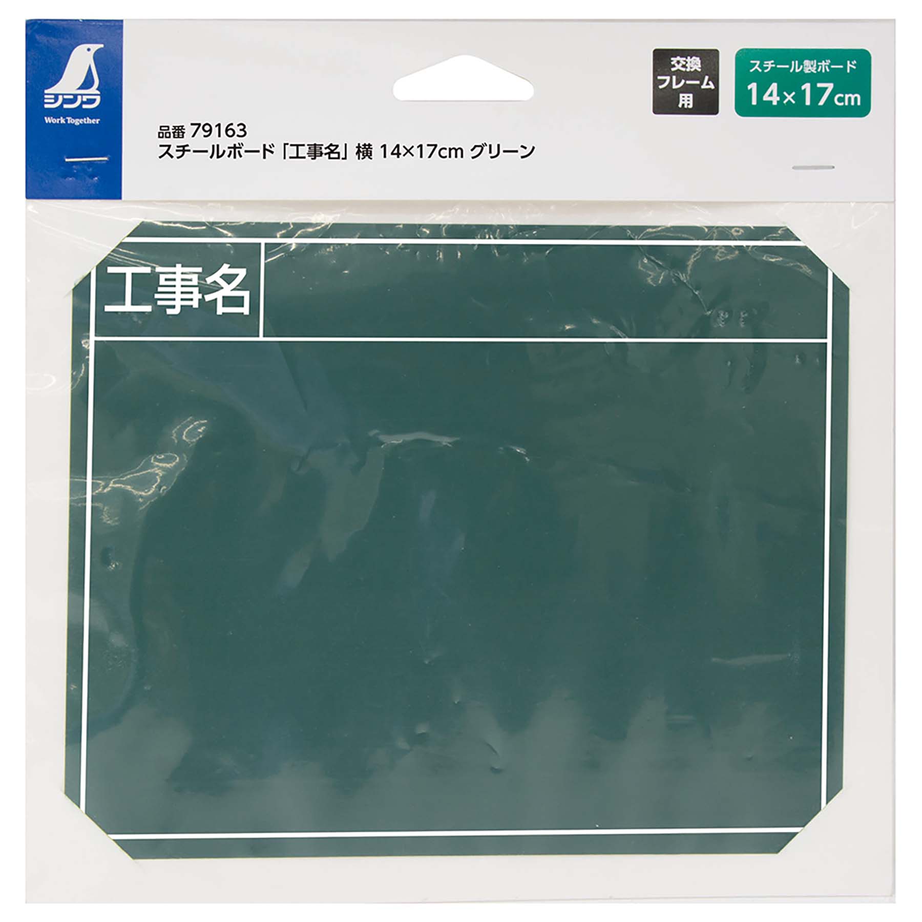 スチールボード「工事名」横14×17cmグリーン