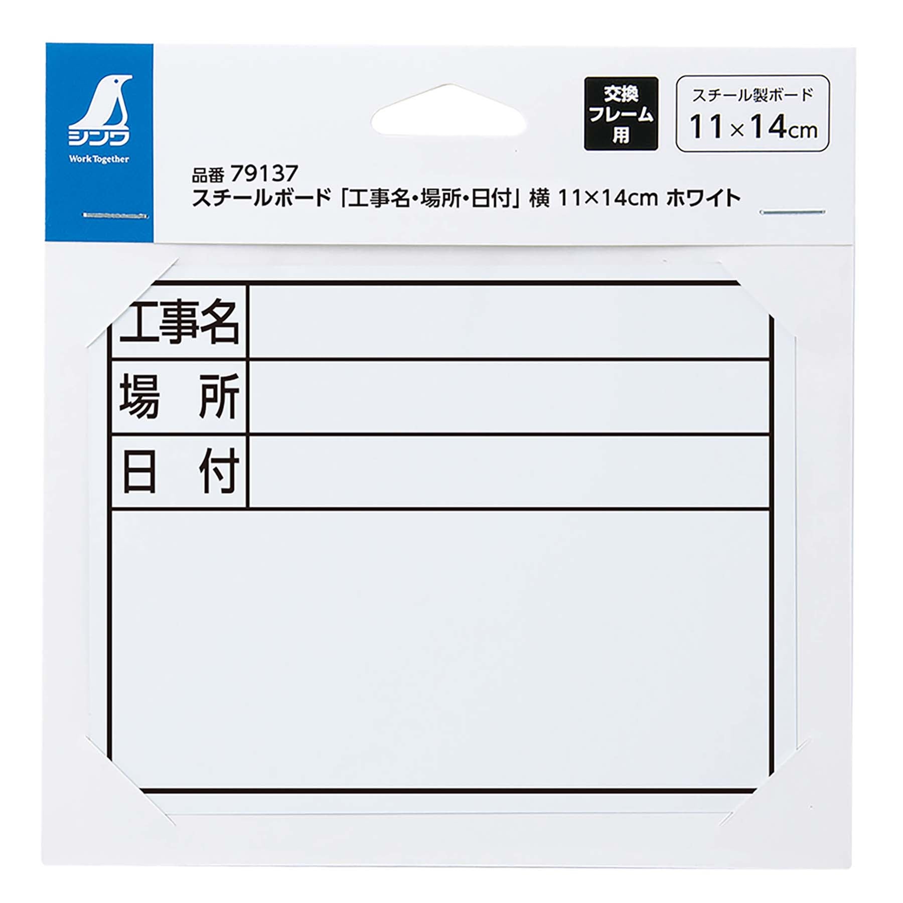 スチールボード「工事名・場所・日付」横11×14cmホワイト |