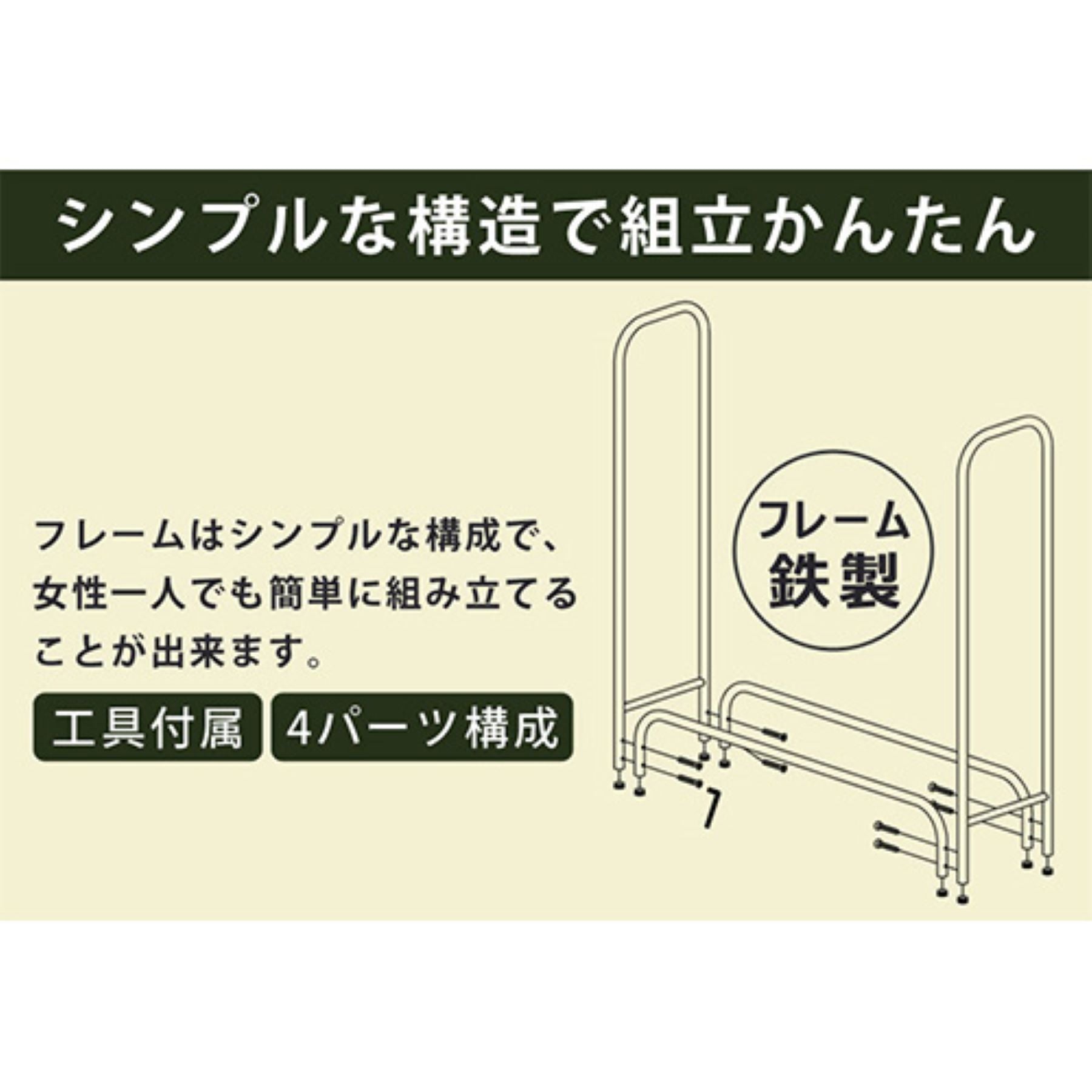 ●シンプルな構造なので組立は簡単に行えます。またフレームは鉄製で軽量なので扱いやすくなっています。