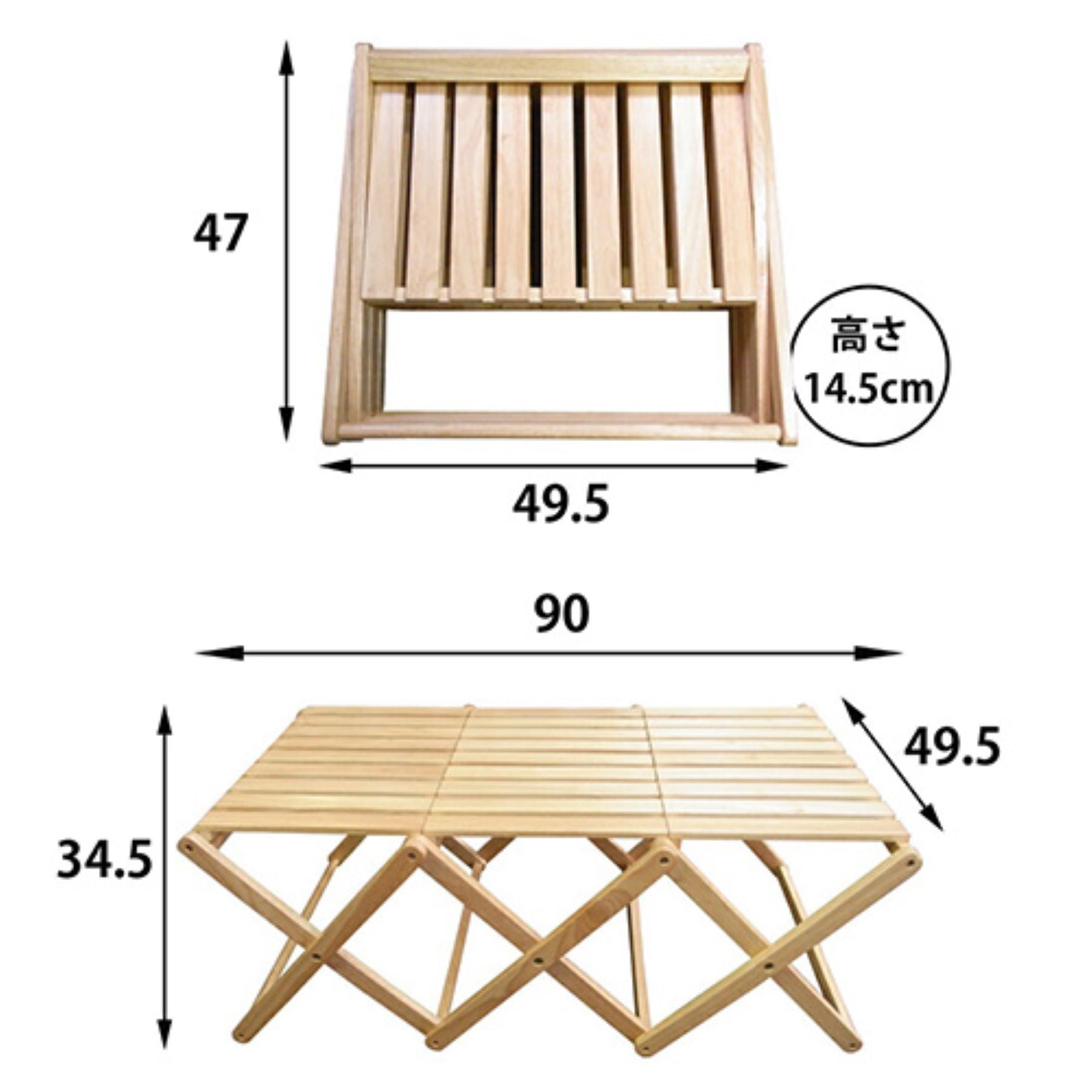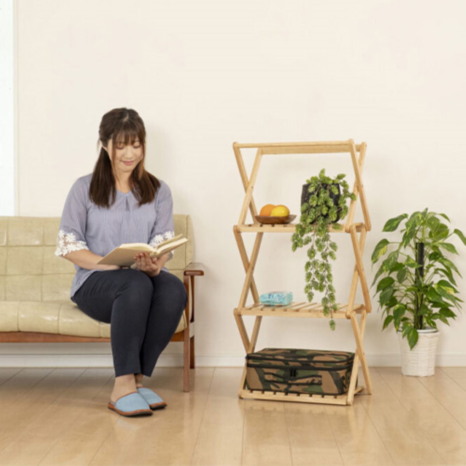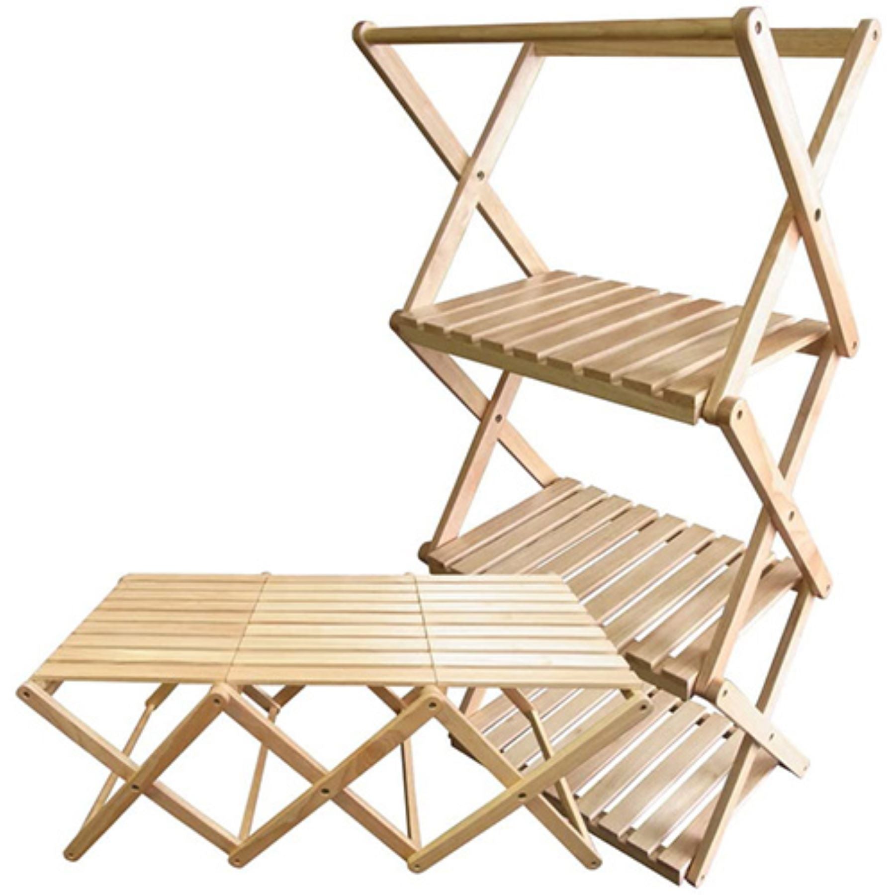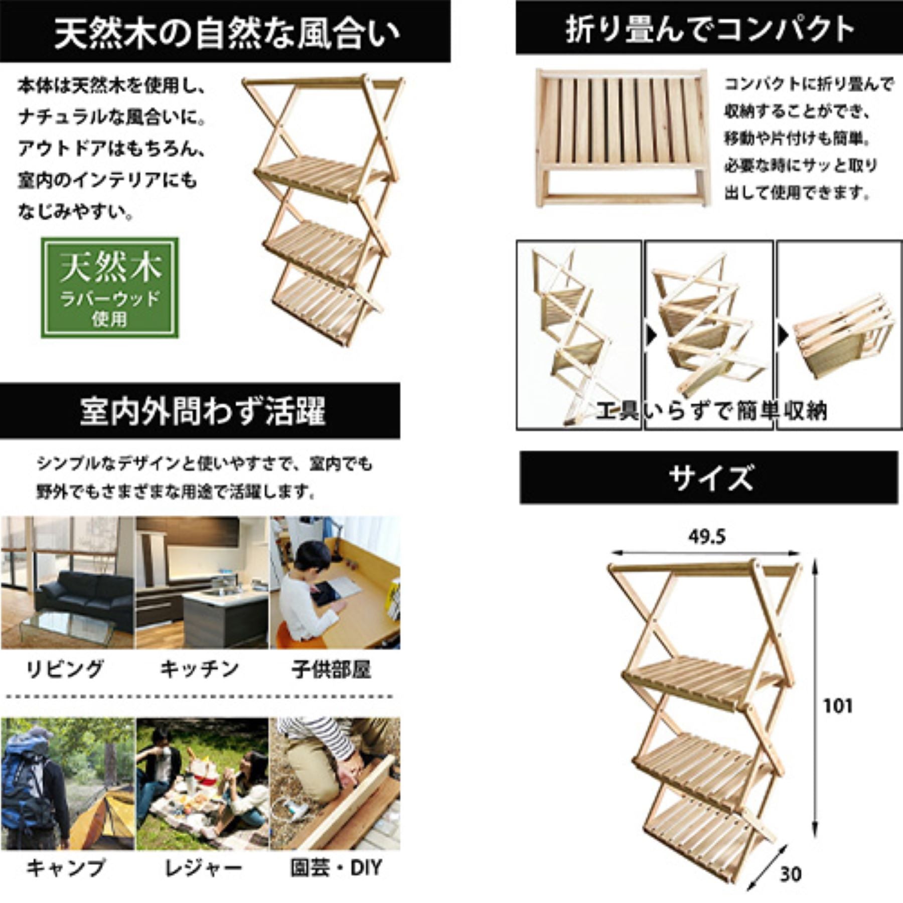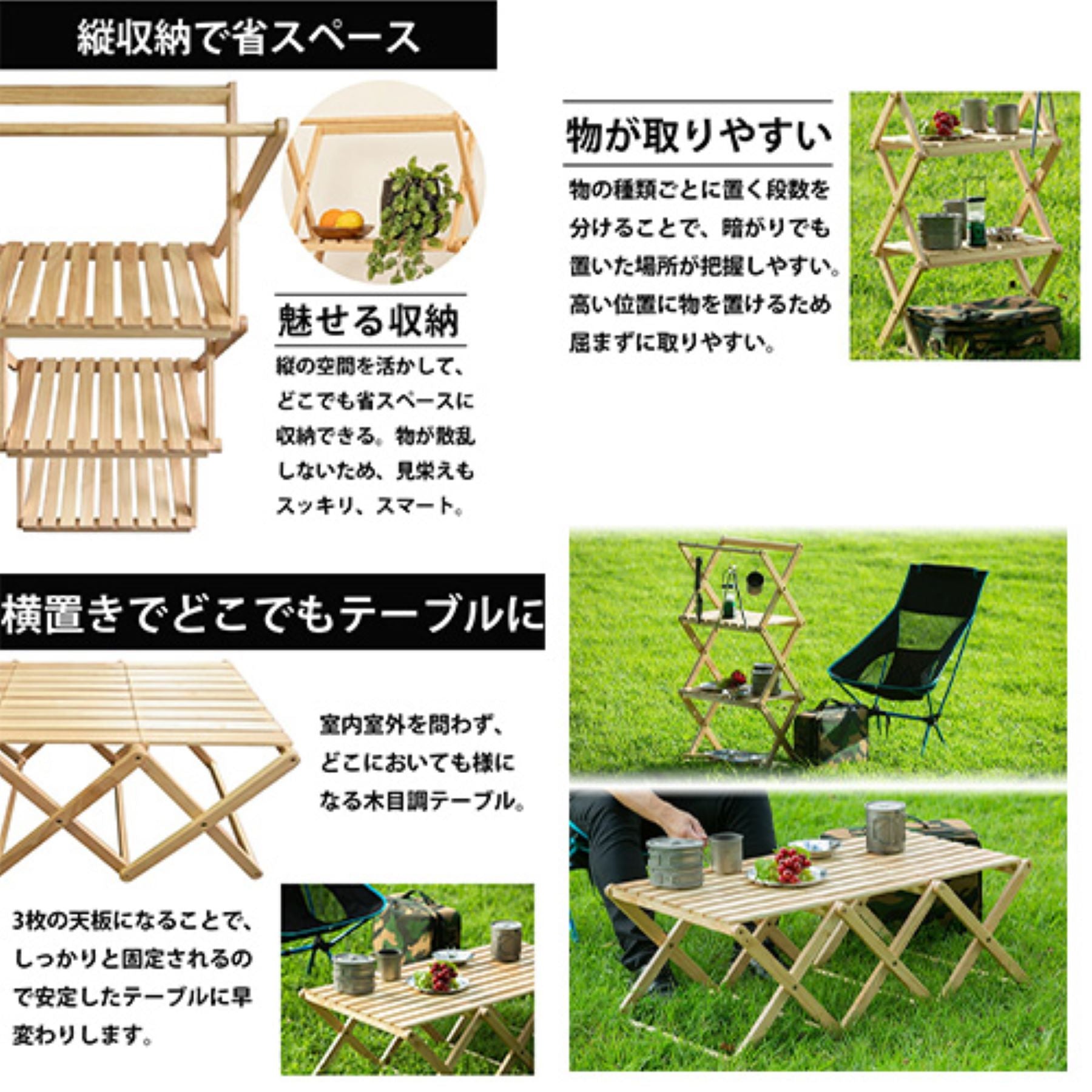折り畳み式ラック&テーブル 2WAY 縦収納 省スペース 耐荷約30kg 天然木