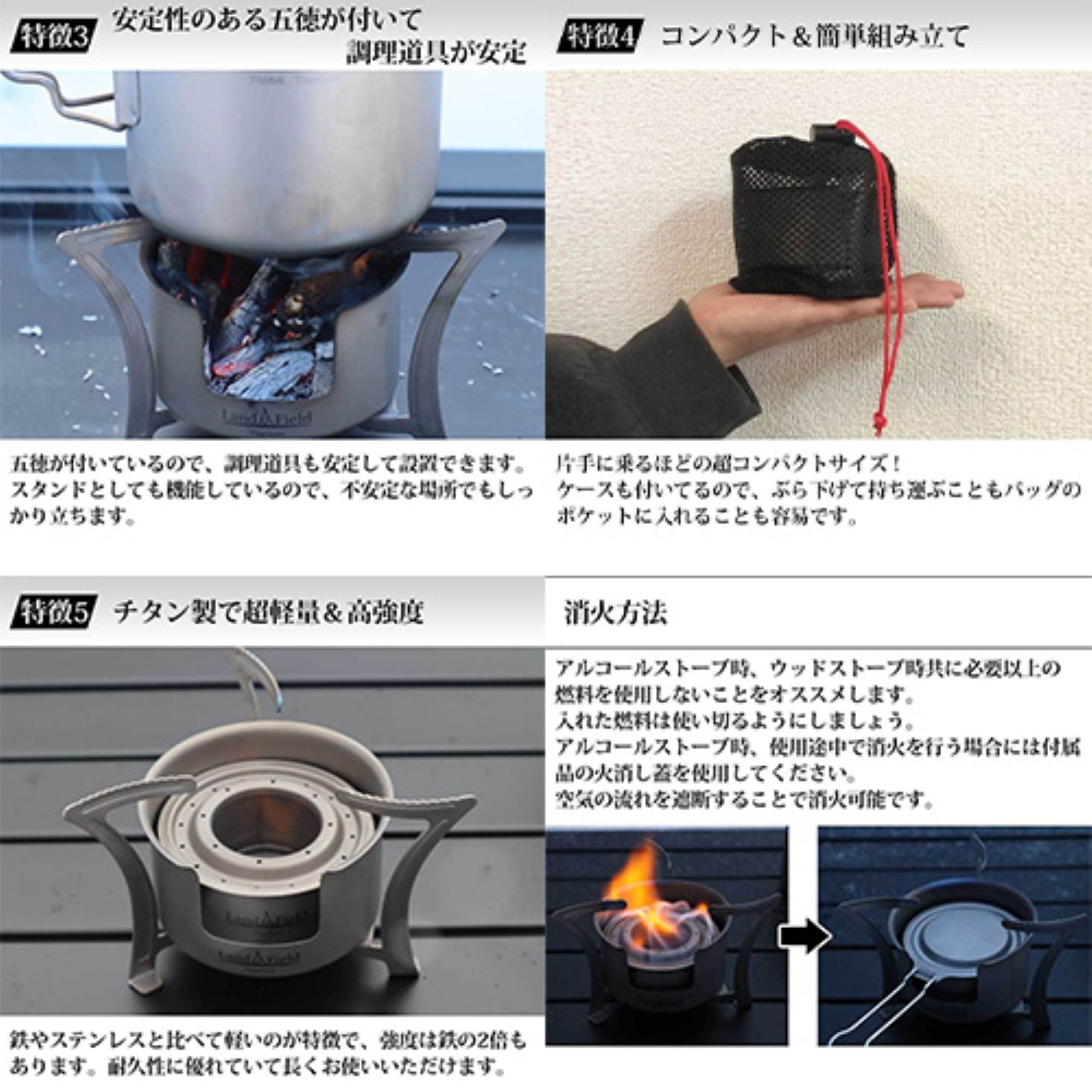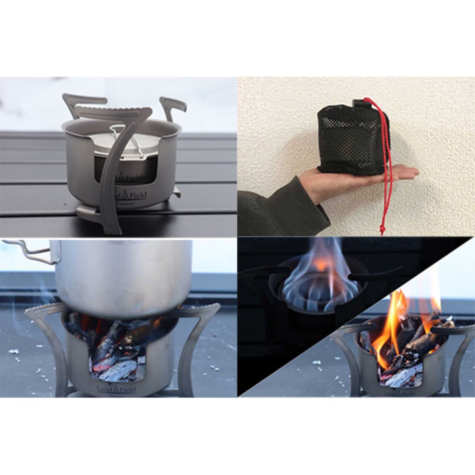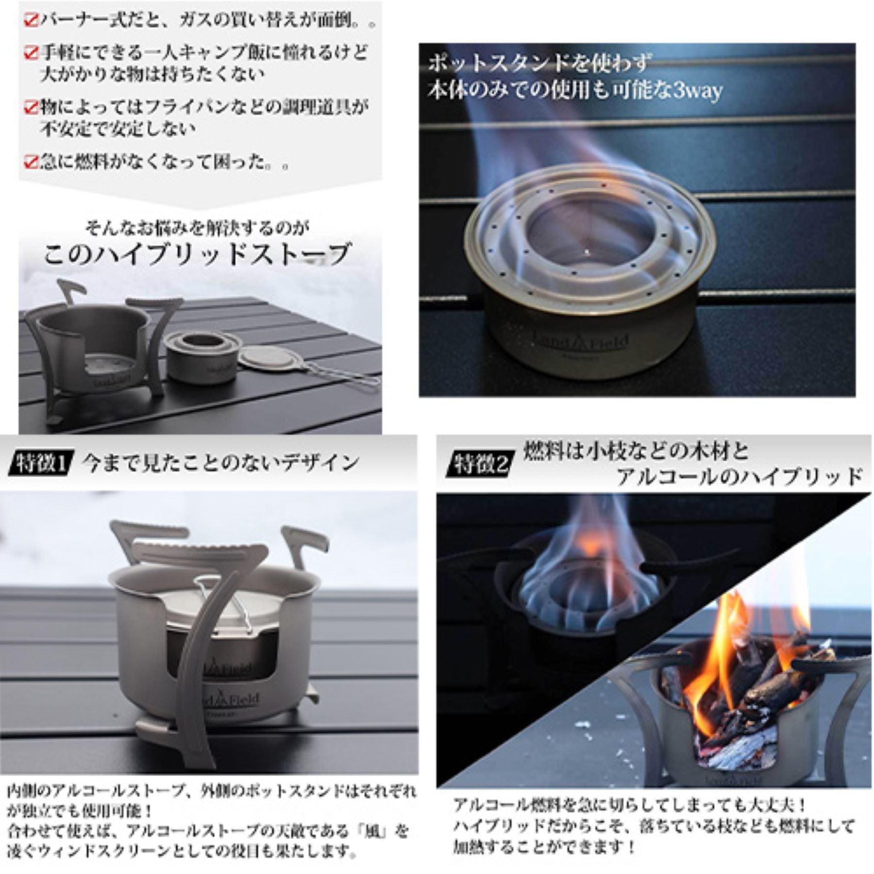 木材&アルコールハイブリッドストーブ 小型 113g超軽量 五徳付 収納袋付