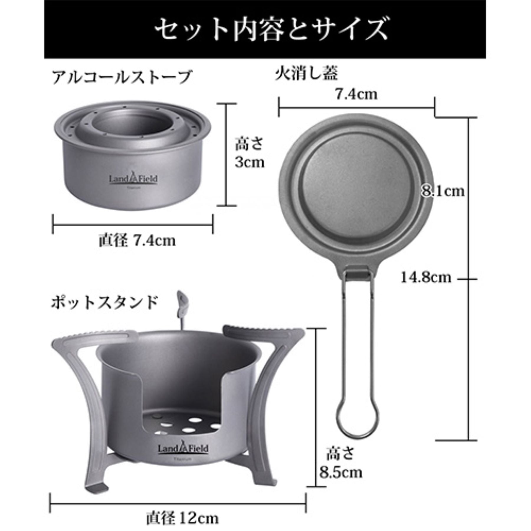 ●内側のアルコールストーブ、外側のポットスタンドはそれぞれが独立でも使用可能で、合わせて使うことで、アルコールストーブの天敵であり風を凌ぐウィンドスクリーンとしての役目も果たします。
